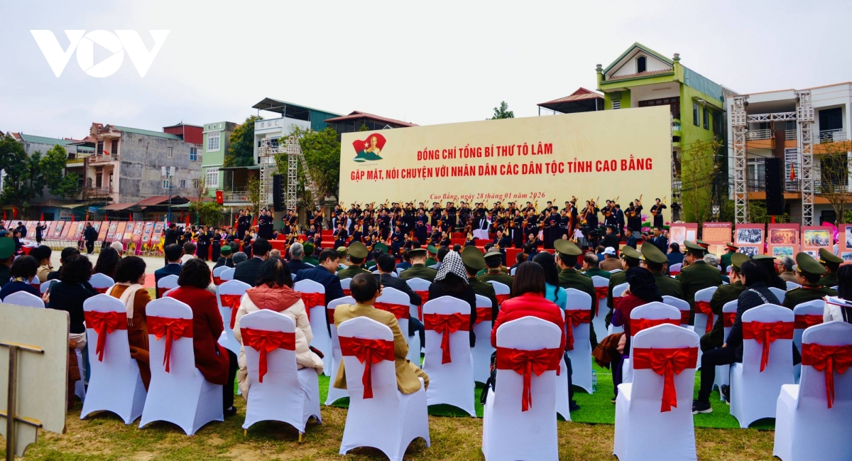 Trong không khí kỷ niệm 96 năm ngày thành lập Đảng Cộng sản Việt Nam (3/02/1930 - 3/02/2026), 85 năm Ngày Bác Hồ về nước (28/1/1941-28/1/2026), hướng tới 65 năm Ngày Bác trở lại thăm Cao Bằng (21/2/1961 - 21/2/2026), chiều 28/1, tại Sân vận động tỉnh Cao Bằng, Tổng Bí thư Tô Lâm đã gặp mặt, nói chuyện với nhân dân các dân tộc tỉnh Cao Bằng. Chính tại nơi này, mùa Xuân năm 1961, Bác Hồ đã nói chuyện với đồng bào, cán bộ, chiến sĩ các dân tộc trong tỉnh, gửi gắm niềm tin, căn dặn trách nhiệm và trao cho Cao Bằng một sứ mệnh rất lớn trong sự nghiệp xây dựng đất nước.