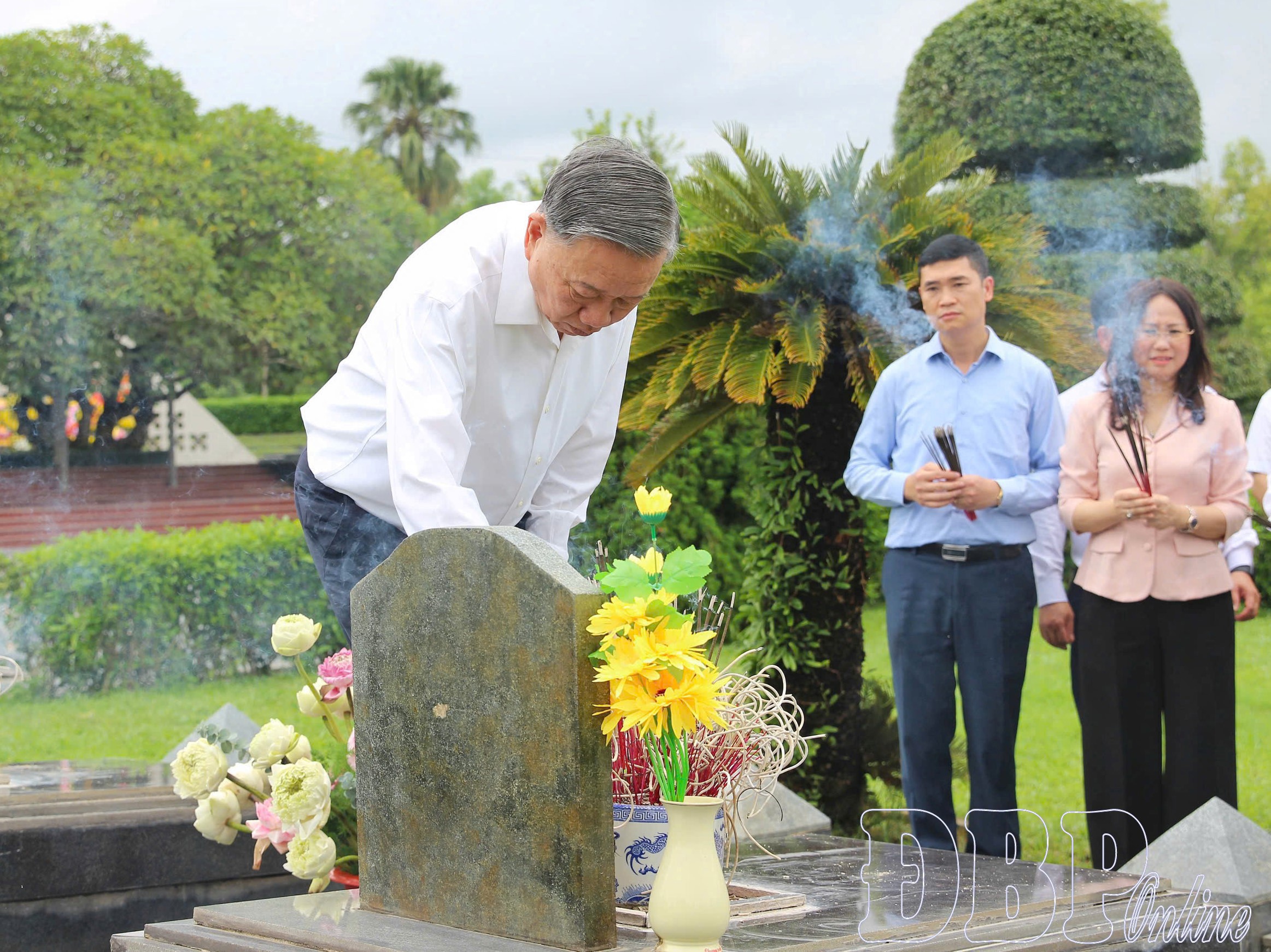 Tổng Bí thư Tô Lâm thắp hương phần mộ liệt sĩ tại Nghĩa trang liệt sĩ A1.