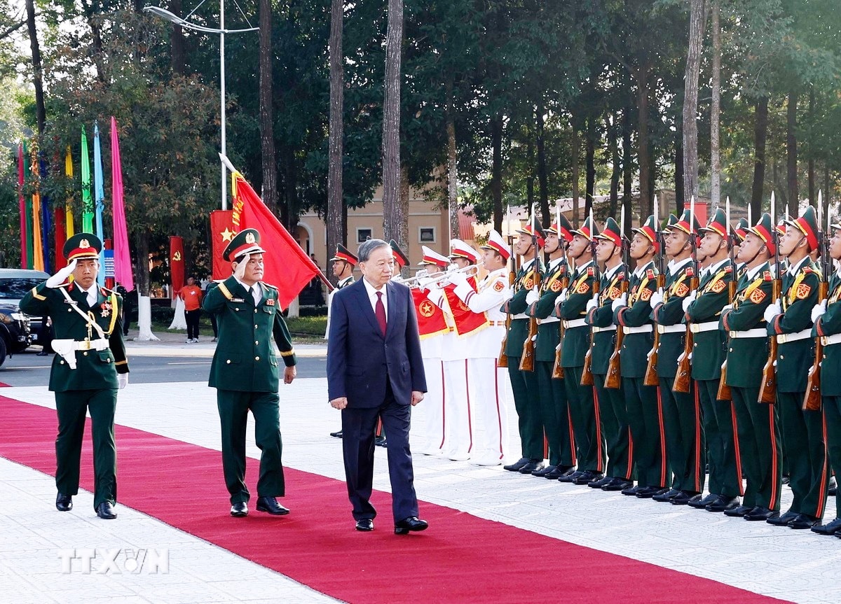 Tổng Bí thư Tô Lâm đến dự Lễ kỷ niệm 80 năm Ngày truyền thống lực lượng vũ trang Quân khu 9 và đón nhận danh hiệu Anh hùng Lực lượng Vũ trang Nhân dân. Ảnh: Thống Nhất/TTXVN