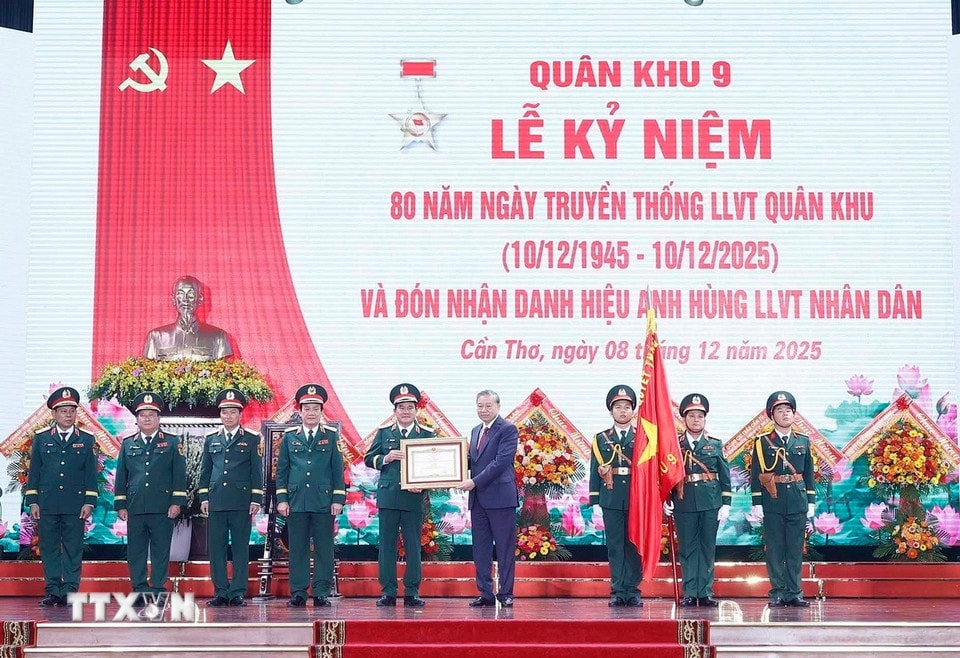 Nhân dịp kỷ niệm 80 năm Ngày truyền thống lực lượng vũ trang Quân khu 9 (10/12/1945-10/12/2025) và đón nhận danh hiệu Anh hùng lực lượng vũ trang nhân dân, trước đó, sáng cùng ngày, tại thành phố Cần Thơ, Tổng Bí thư Tô Lâm, Bí thư Quân ủy Trung ương và Đoàn Công tác của Trung ương đã đến dâng hương, dâng hoa tại Tượng đài Chiến thắng, Nhà bia tưởng niệm các Anh hùng liệt sĩ và Nhà tưởng niệm Chủ tịch Hồ Chí Minh.