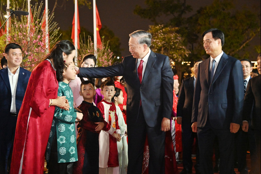 Tổng Bí thư Tô Lâm cùng lãnh đạo thành phố đã dâng hương trước tượng đài Vua Lý Thái Tổ; thăm hỏi động viên lực lượng công nhân môi trường, công an và mừng tuổi các cụ cao niên, các em nhỏ...