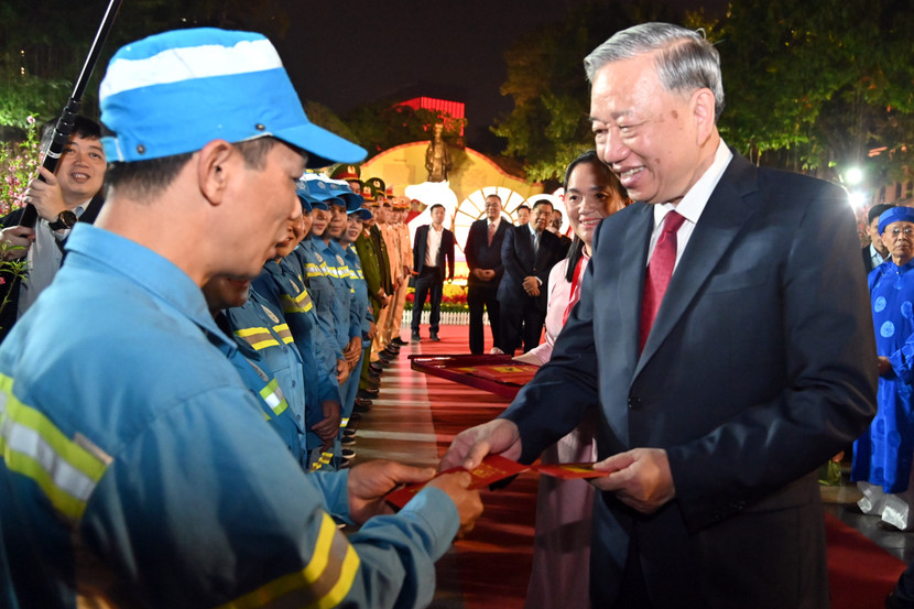 Tổng Bí thư Tô Lâm mừng tuổi, động viên công nhân môi trường Hà Nội