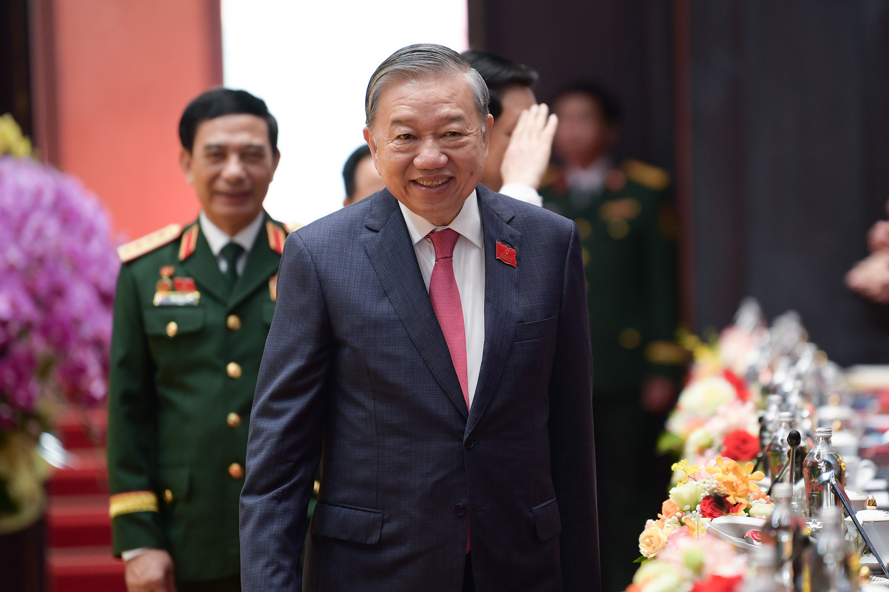 Tổng Bí thư Tô Lâm và Chủ tịch nước Lương Cường cùng lãnh đạo Bộ Quốc phòng dự Đại hội.