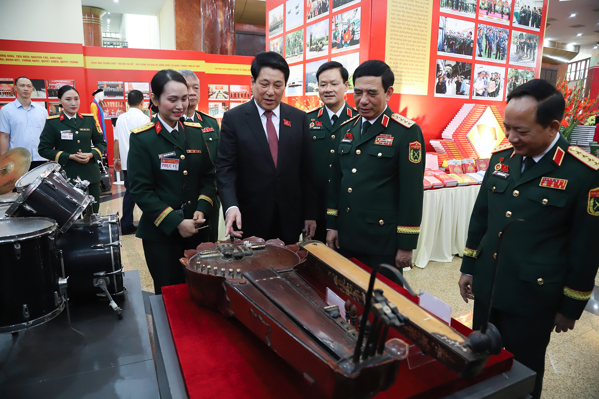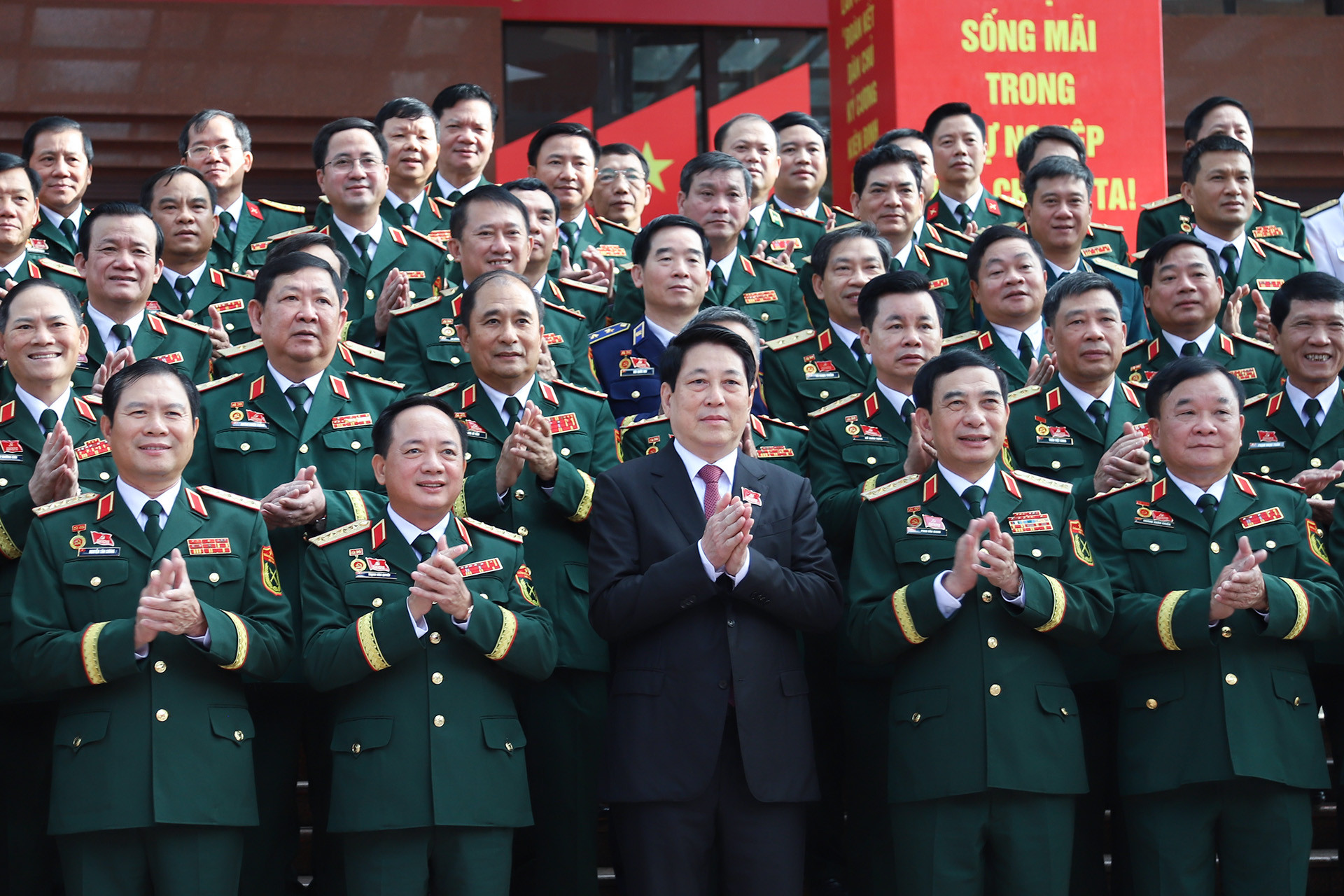 Trước đó, Chủ tịch nước Lương Cường đã tham quan gian trưng bày về thành tựu quốc phòng.