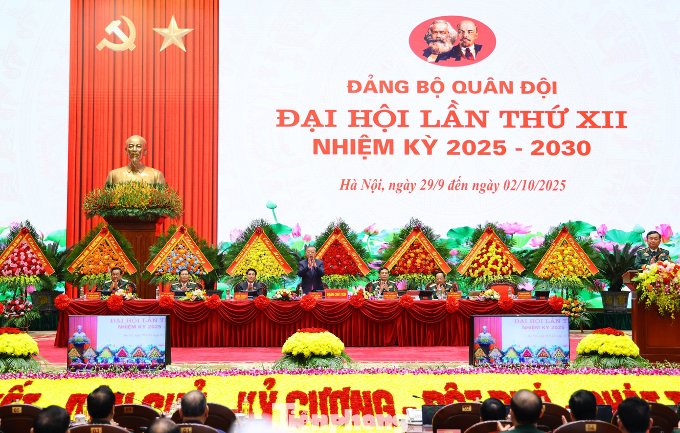 Tổng Bí thư Tô Lâm và Chủ tịch nước Lương Cường tới dự phiên bế mạc Đại hội đại biểu Đảng bộ Quân đội lần thứ XII, sáng 2/10.
