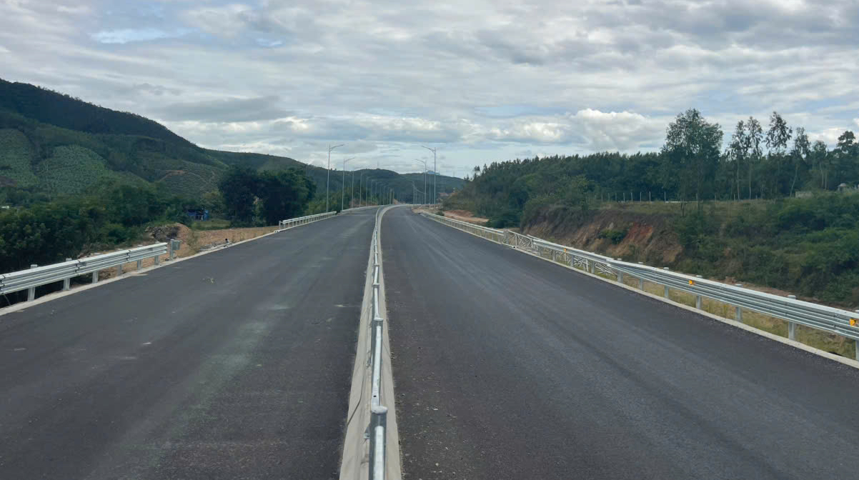Đoạn tuyến cao tốc Chí Thạnh - Vân Phong do Tổng công ty Thăng Long ở giai đoạn hoàn thiện.