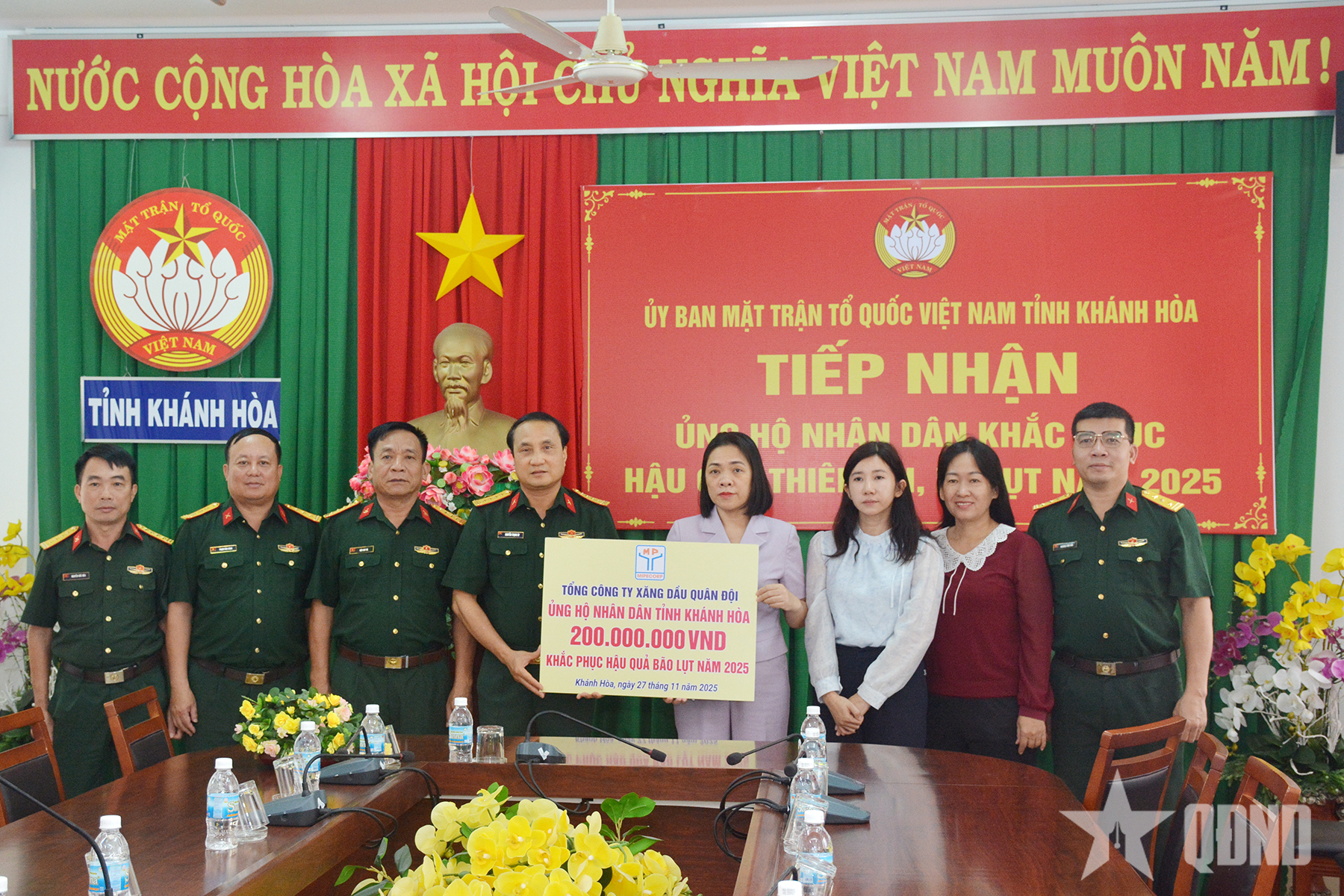 Tổng công ty Xăng dầu Quân đội trao 200 triệu đồng ủng hộ tỉnh Khánh Hòa.