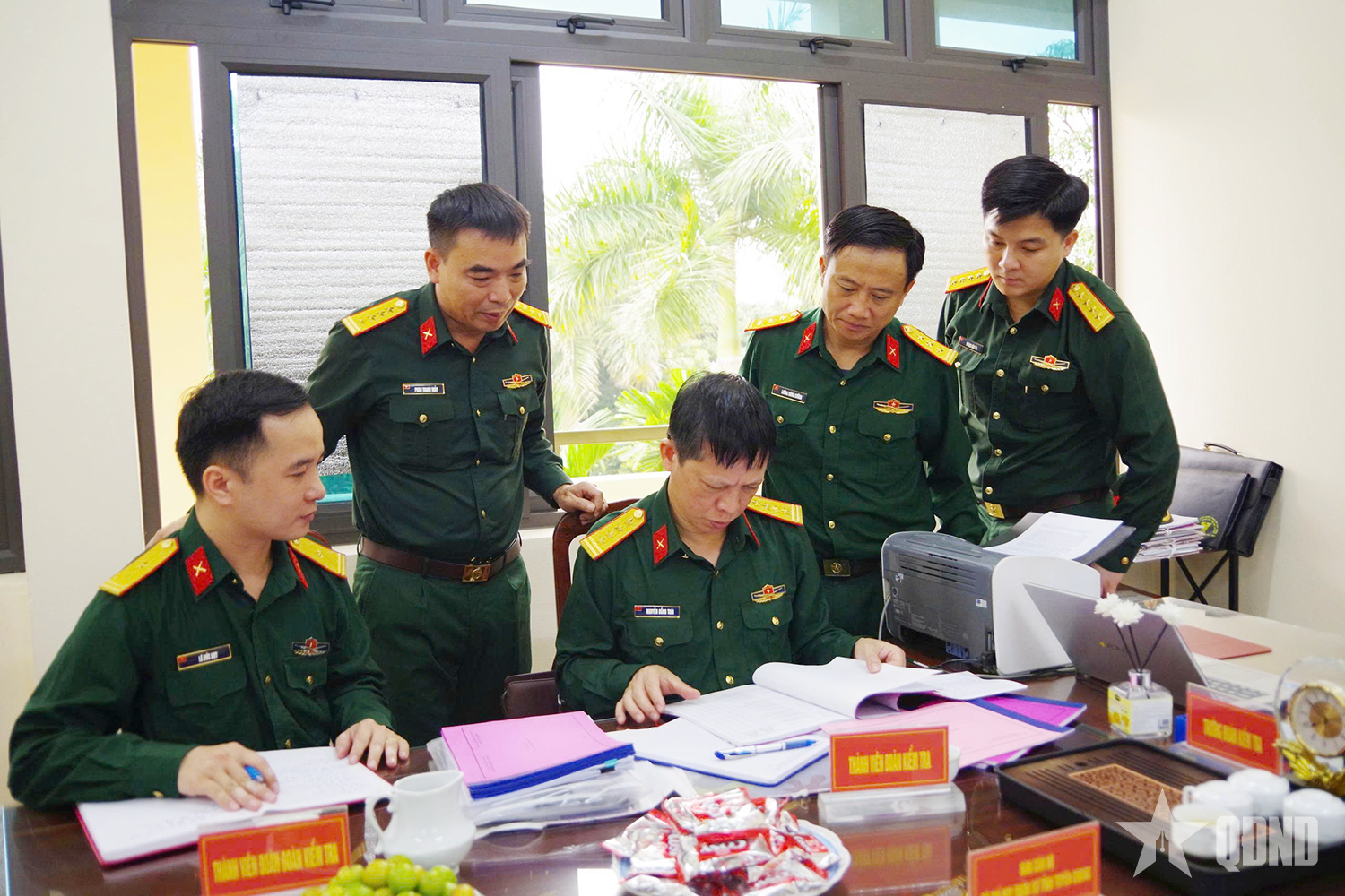 Đoàn công tác đã tiến hành kiểm tra hệ thống văn bản, hồ sơ, sổ sách liên quan đến công tác cán bộ; đồng thời trao đổi, nắm tình hình và làm rõ một số nội dung về công tác quản lý, sử dụng cán bộ, chính sách cán bộ nhất là đội ngũ cán bộ hiện nay được điều động về cơ sở theo chủ trương của Quân ủy Trung ương, Bộ Quốc phòng từ khi thành lập Ban CHQS xã, phường theo mô hình quyền địa phương 2 cấp.