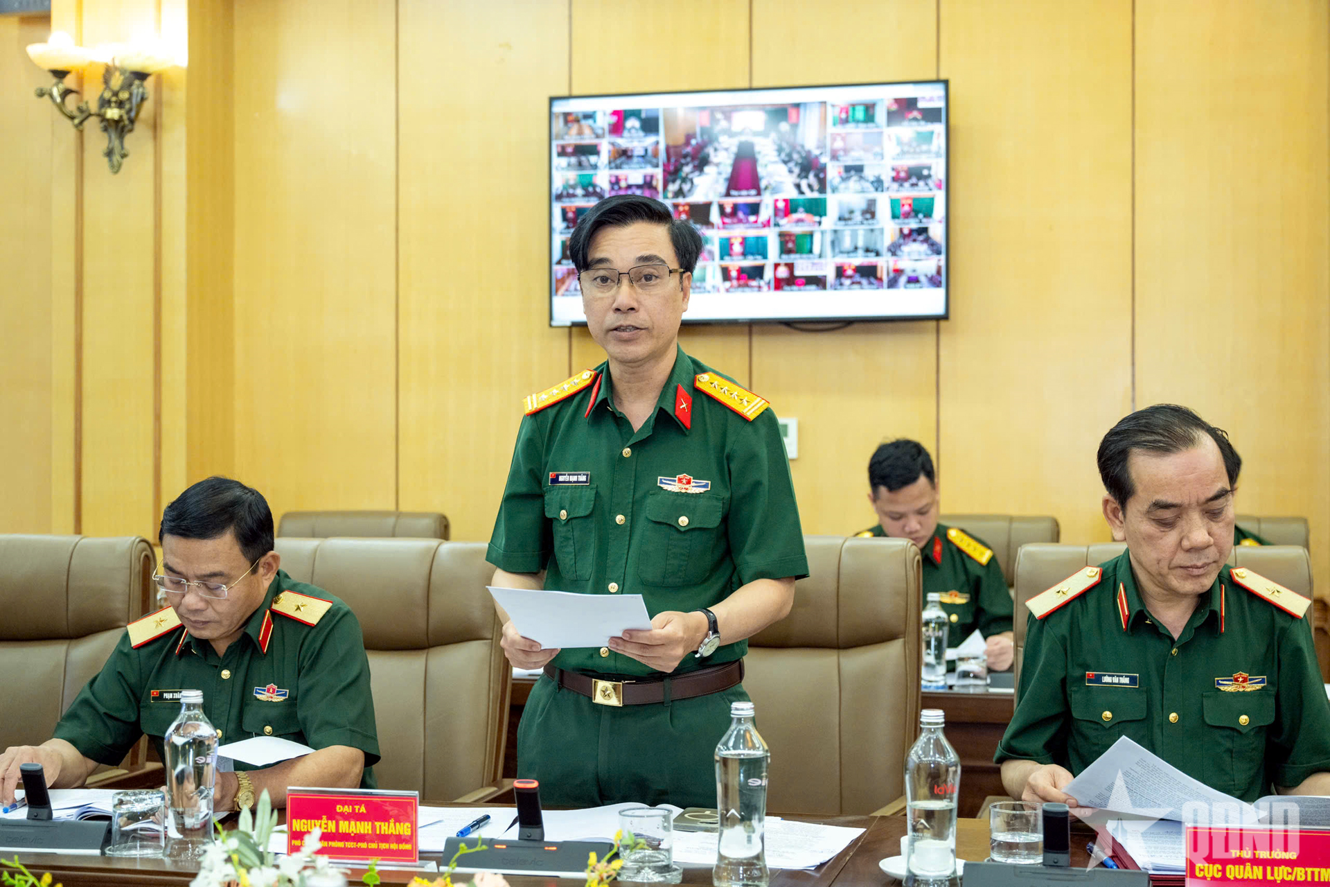 Đại tá Nguyễn Mạnh Thắng, Phó chánh Văn phòng Tổng cục Chính trị báo cáo kết quả thực hiện dự án tại hội nghị nghiệm thu.