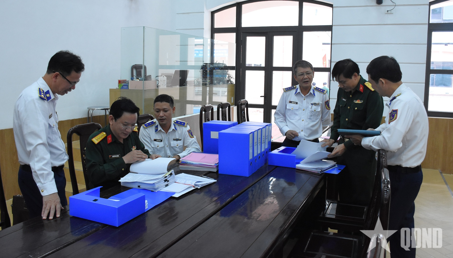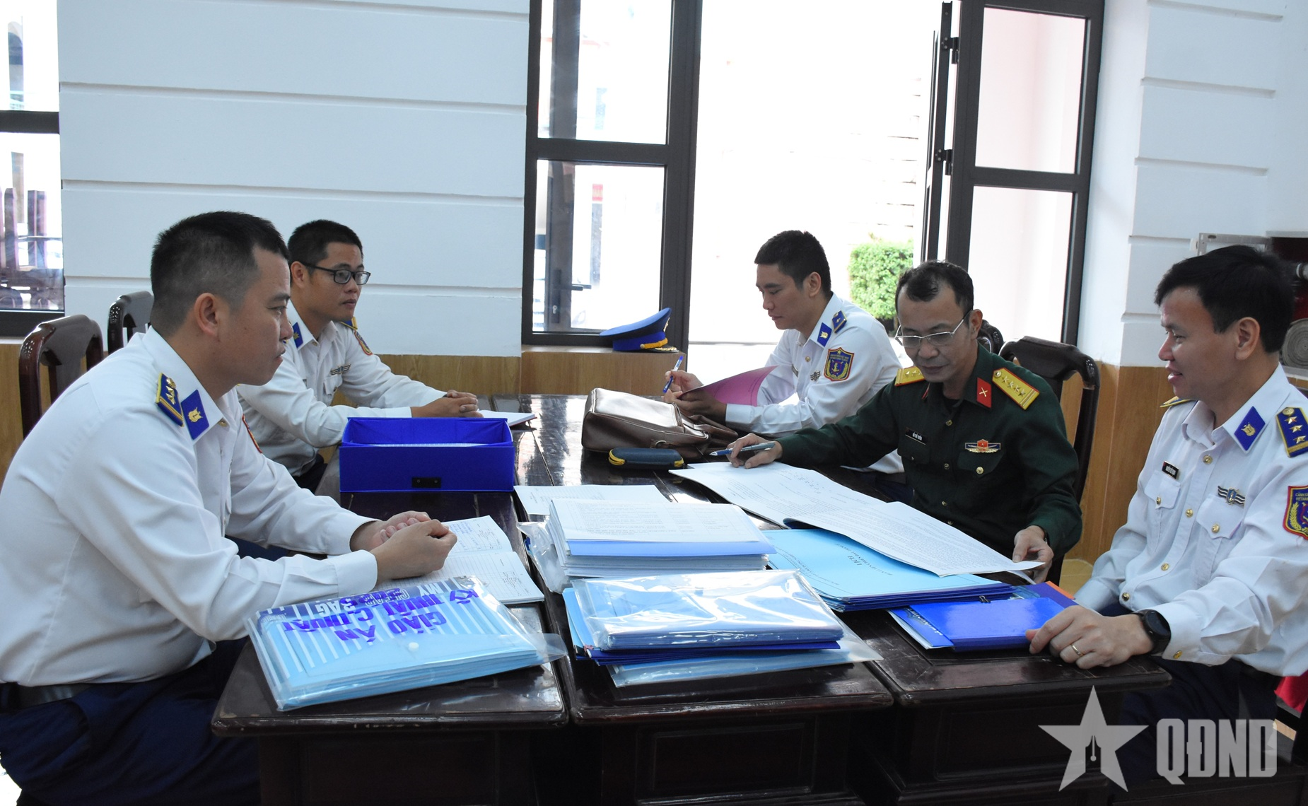 Đoàn công tác tiến hành kiểm tra tại Cục Chính trị Cảnh sát biển Việt Nam.