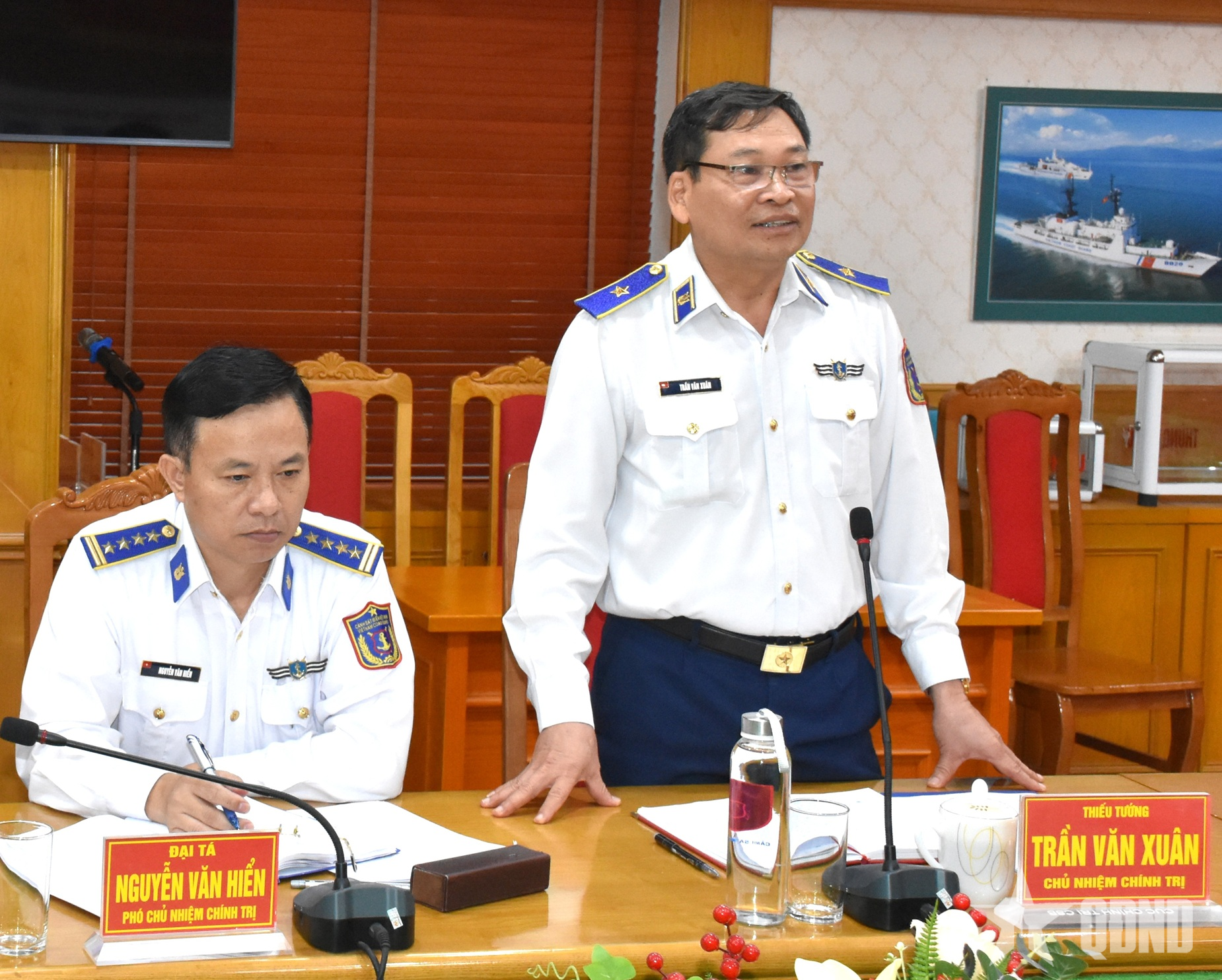 Thiếu tướng Trần Văn Xuân, Phó chính ủy kiêm Chủ nhiệm Chính trị Cảnh sát biển Việt Nam phát biểu tại buổi kiểm tra.