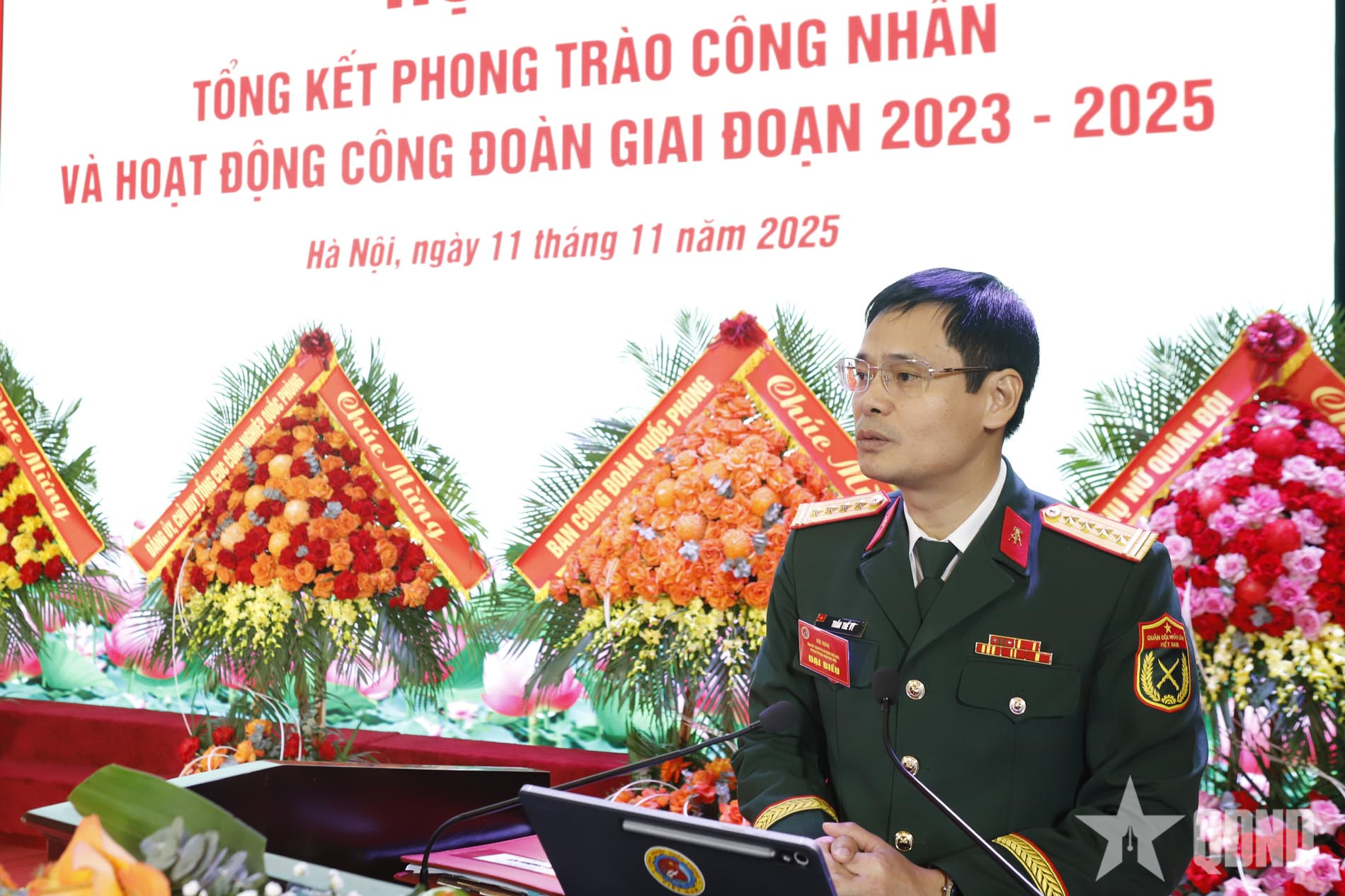 Biểu dương những thành tích, kết quả mà đoàn viên công đoàn, người lao động Tổng cục đã đạt được trong những năm qua, phát biểu chỉ đạo hội nghị, Trung tướng Đinh Quốc Hùng nhấn mạnh: Giai đoạn 2025-2030, cấp ủy, chỉ huy các cấp tiếp tục quán triệt sâu sắc các chỉ thị, nghị quyết của Đảng, Quân ủy Trung ương về đổi mới tổ chức và hoạt động của công đoàn trong thời kỳ mới; nhận thức đúng vai trò, vị trí của phong trào công nhân và hoạt động công đoàn, về bản lĩnh chính trị, sứ mệnh lịch sử của giai cấp công nhân.