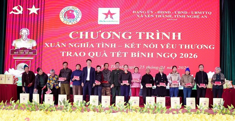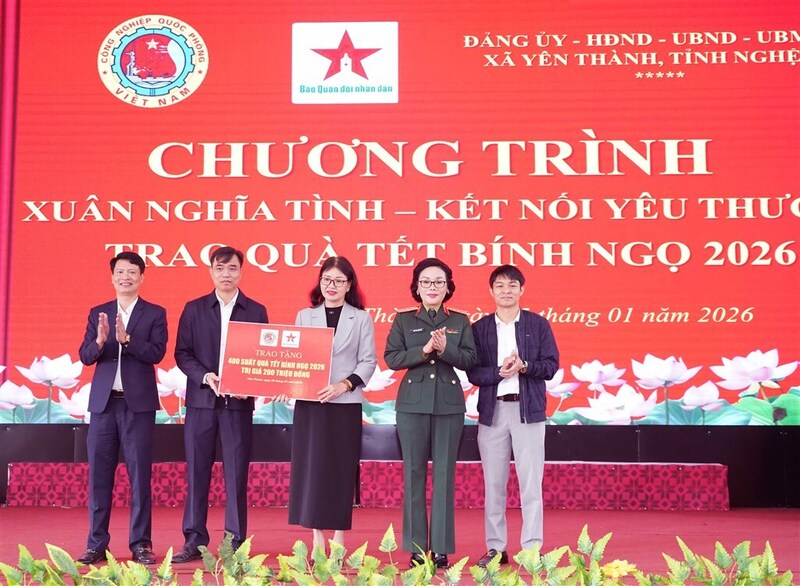 Ngày 25/1, Tổng cục Công nghiệp Quốc phòng và Báo Quân đội Nhân dân phối hợp với xã Yên Thành, tỉnh Nghệ An tổ chức Chương trình “Xuân nghĩa tình - Kết nối yêu thương” trao quà tết Bính Ngọ năm 2026.