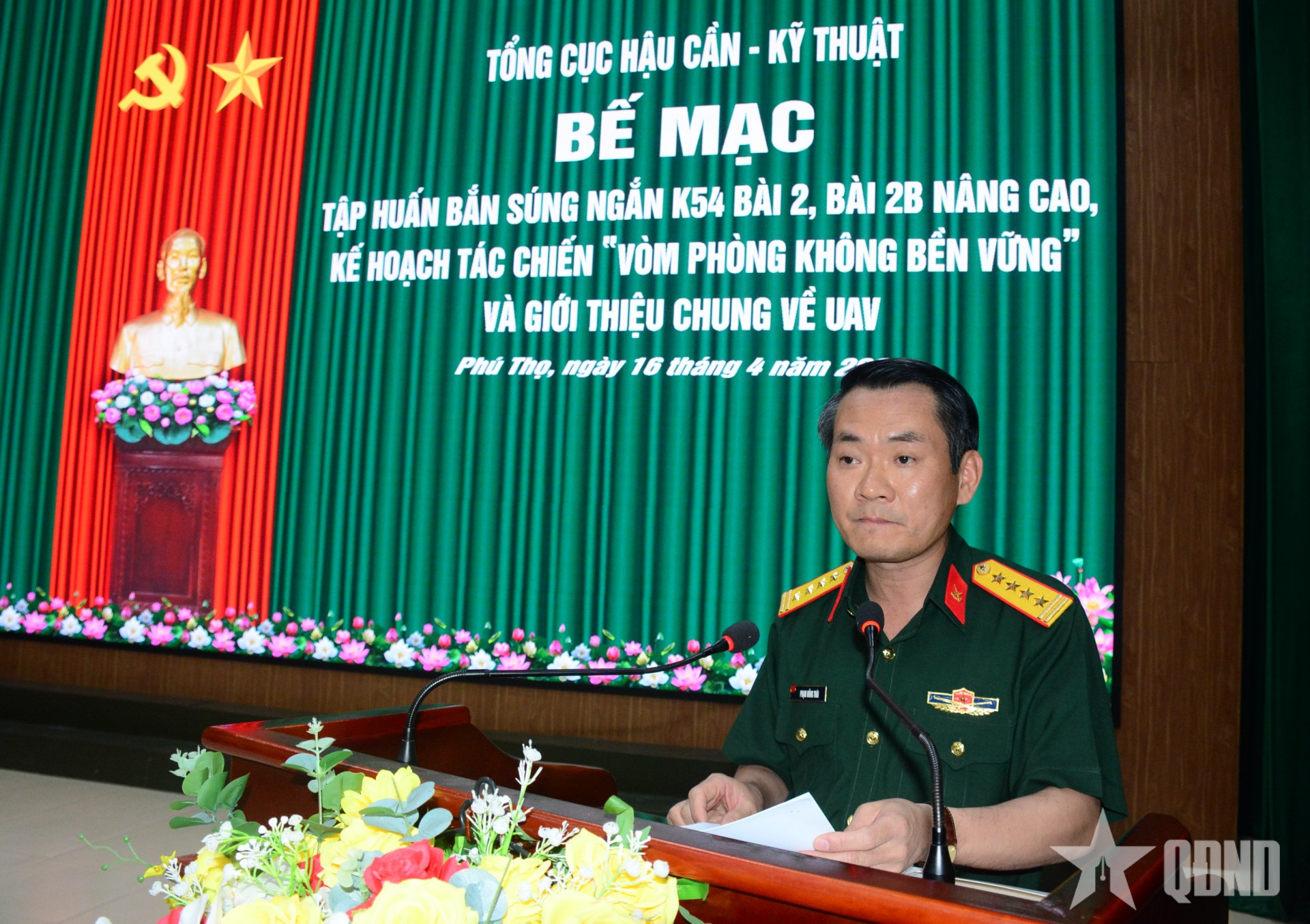 Đại tá Phạm Hồng Thái, Phó tham mưu trưởng Tổng cục Hậu cần - Kỹ thuật báo cáo kết quả tập huấn.