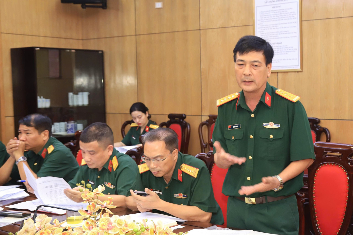 Các thành viên Hội đồng Giải thưởng Tuổi trẻ sáng tạo Tổng cục Hậu cần - Kỹ thuật đóng góp ý kiến, làm rõ tính cấp thiết, hiệu quả của các đề tài.