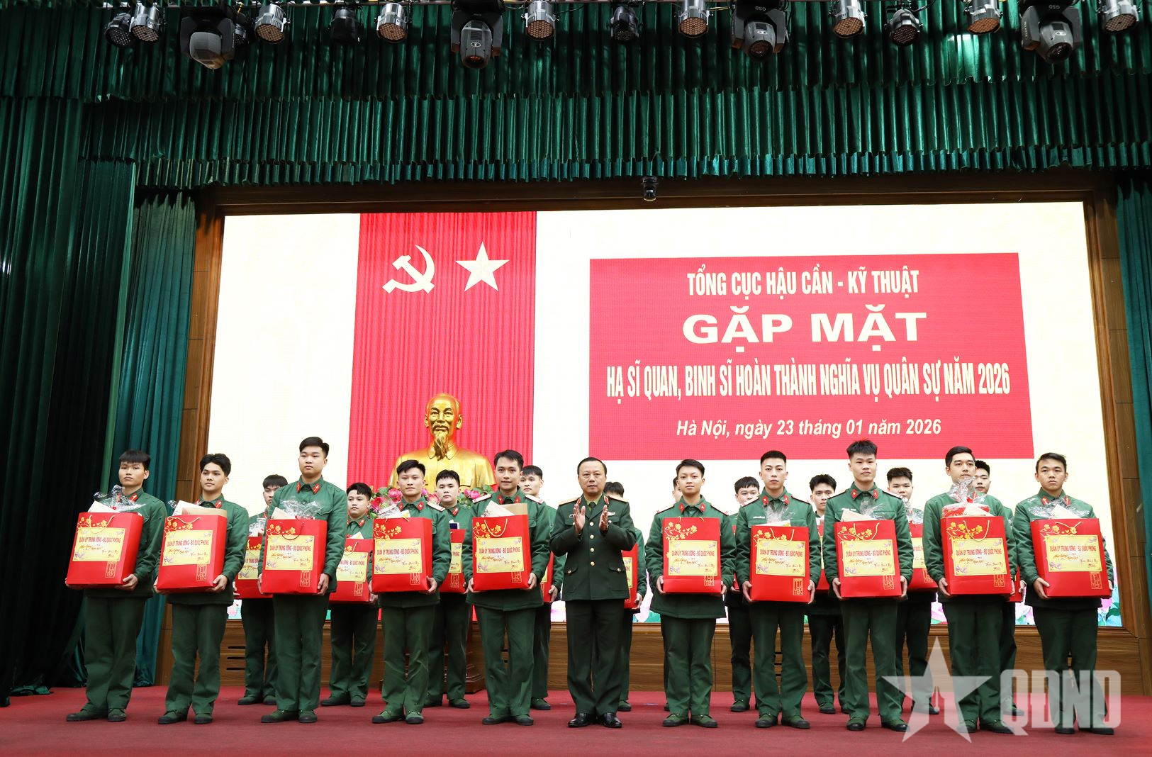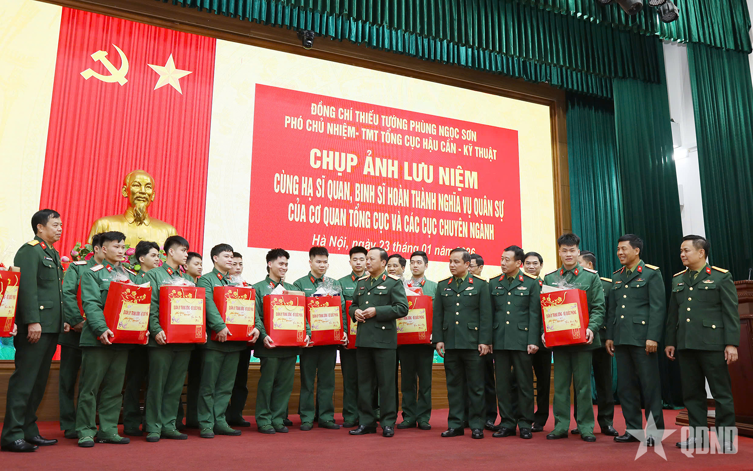 Nhân dịp này, Thiếu tướng Phùng Ngọc Sơn thay mặt Đảng ủy, Chỉ huy Tổng cục Hậu cần - Kỹ thuật trao quà Tết tặng các đồng chí hạ sĩ quan, binh sĩ hoàn thành nghĩa vụ quân sự năm 2026./.