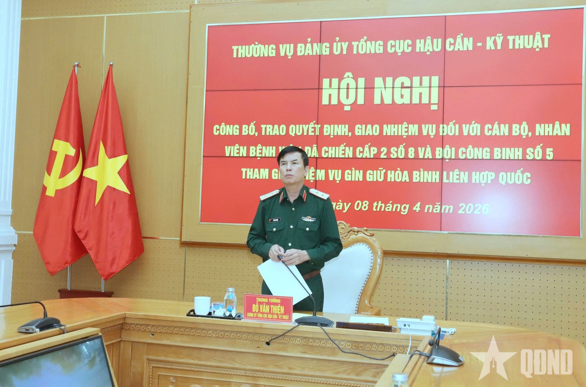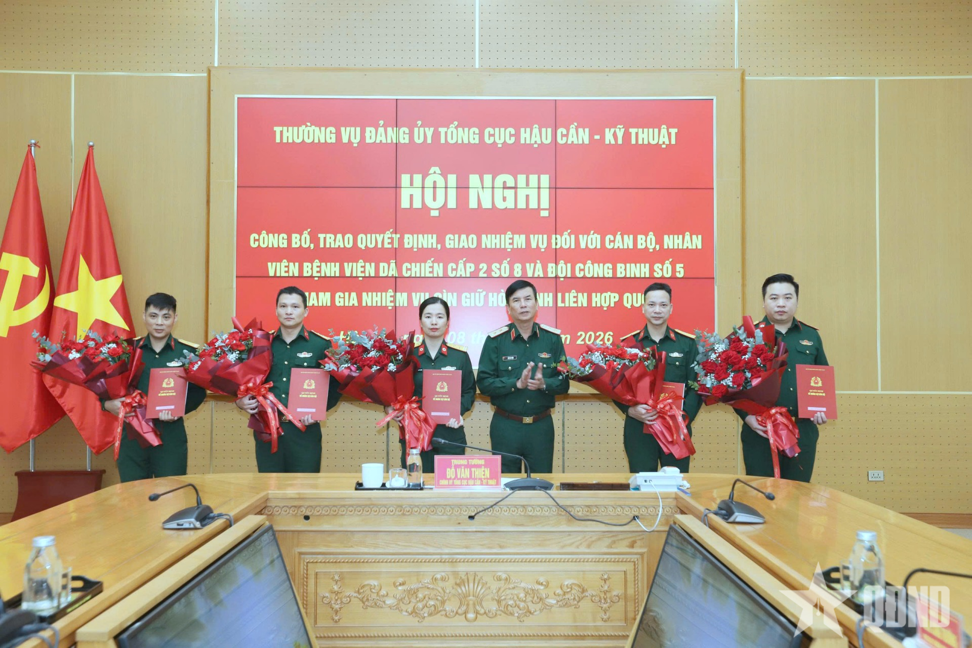 Tại hội nghị, đại diện cơ quan chức năng đã công bố các quyết định của Bộ Quốc phòng về việc điều động cán bộ, Quân nhân chuyên nghiệp (QNCN) thuộc Tổng cục Hậu cần - Kỹ thuật tham gia lực lượng gìn giữ hòa bình Liên hợp quốc. Theo đó, 5 sĩ quan và 10 QNCN được tăng cường cho Bệnh viện dã chiến cấp 2 số 8 và Đội Công binh số 5, góp phần bảo đảm quân số, nâng cao chất lượng thực hiện nhiệm vụ tại phái bộ.