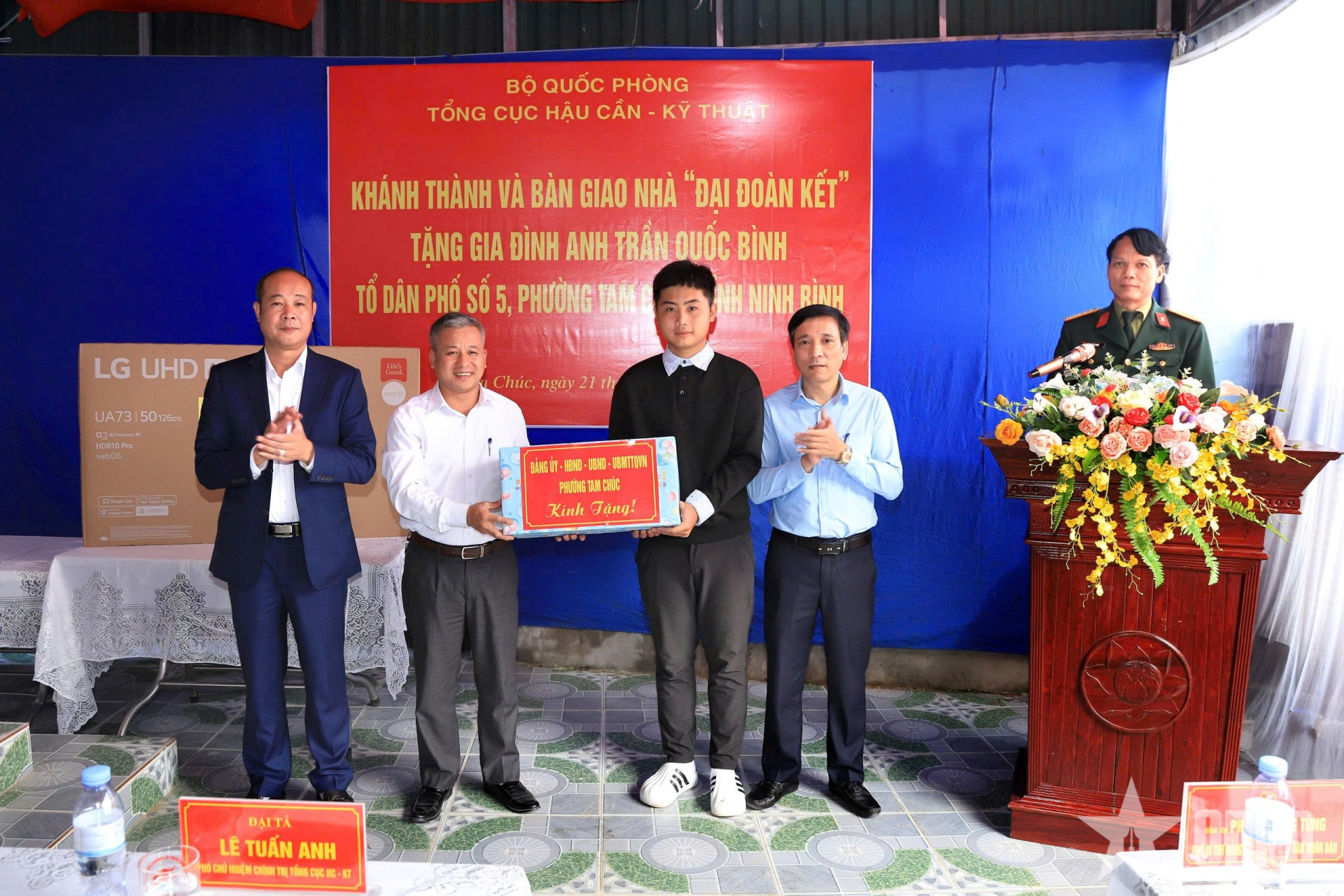 Phát biểu tại lễ khánh thành, Đại tá Lê Tuấn Anh chúc mừng gia đình anh Trần Quốc Bình từ nay có ngôi nhà mới khang trang, góp phần ổn định cuộc sống; mong muốn gia đình chấp hành tốt chủ trương, đường lối của Đảng, chính sách, pháp luật của Nhà nước, quy định của địa phương, tích cực lao động sản xuất, xây dựng gia đình, quê hương ngày càng giàu mạnh.
