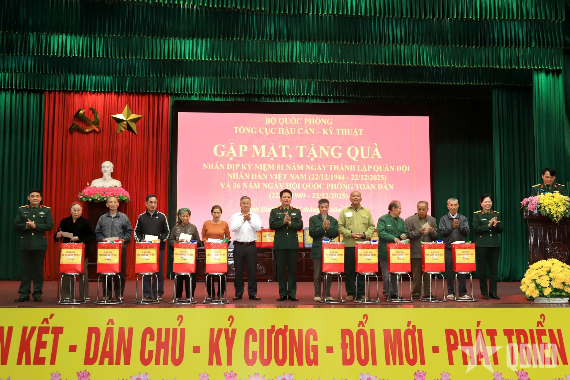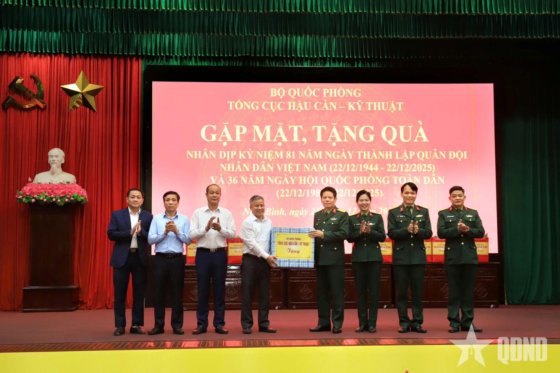 Dịp này, Tổng cục Hậu cần-Kỹ thuật tổ chức gặp mặt, tặng quà cấp ủy, chính quyền địa phương và 40 gia đình chính sách, người có công với cách mạng nhân dịp kỷ niệm 81 năm Ngày thành lập Quân đội nhân dân Việt Nam, 36 năm Ngày hội Quốc phòng toàn dân phường Tam Chúc, tỉnh Ninh Bình.