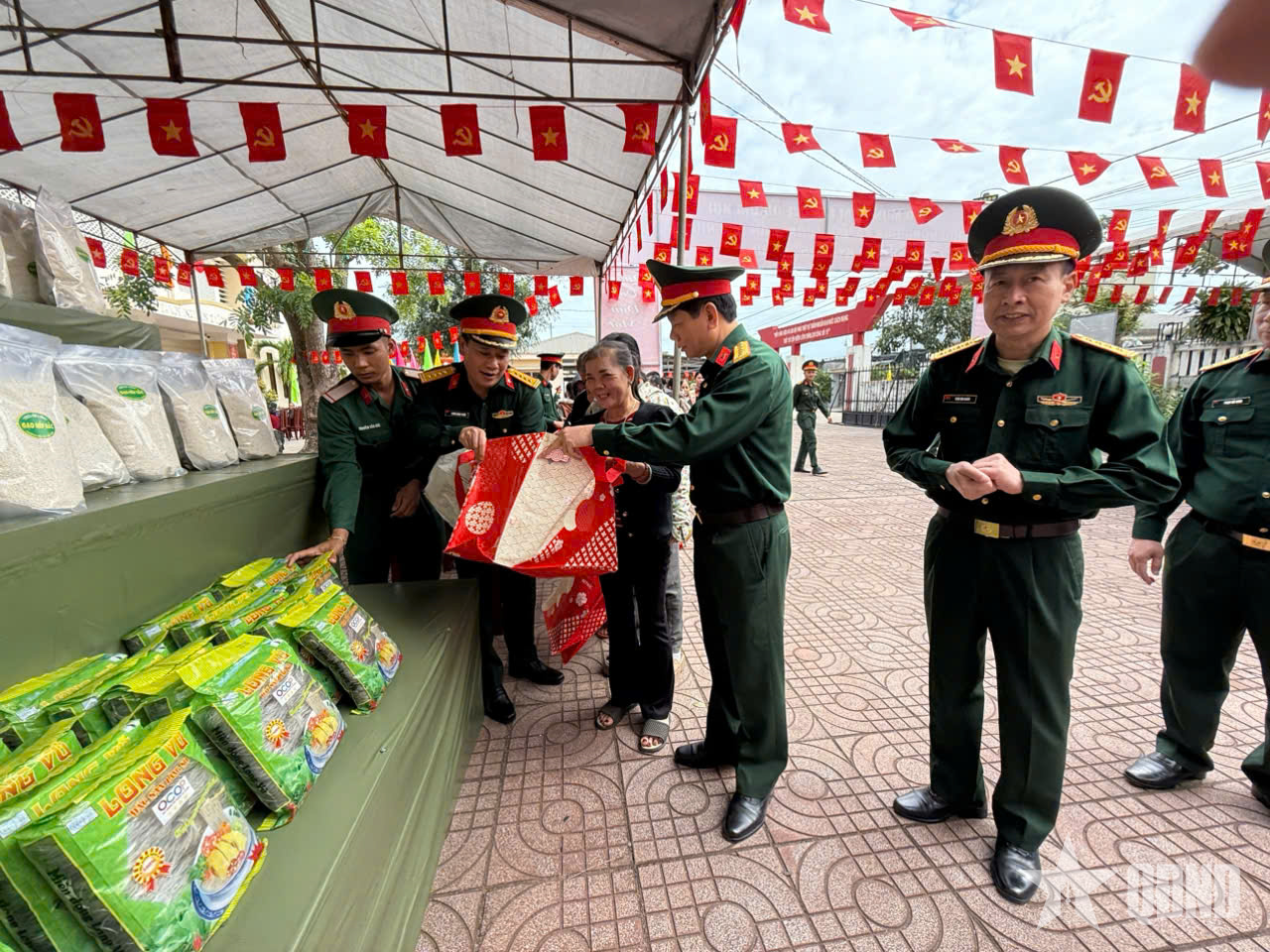 Những phần quà Tết thắm tình quân dân được bộ đội trao tặng đến người dân xã Vạn Tường.