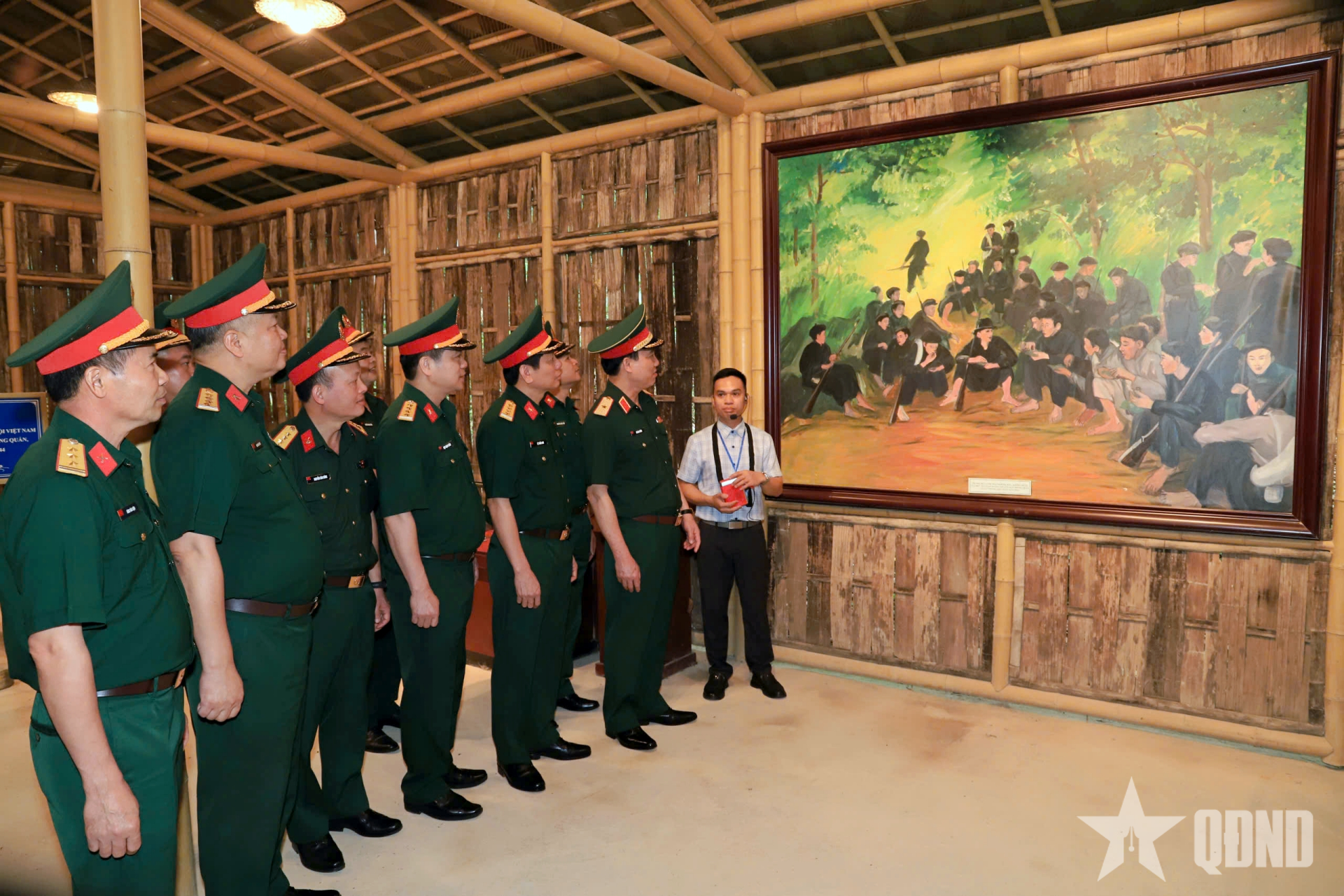 Đoàn công tác tham quan lán nghỉ của Đội Việt Nam Tuyên truyền Giải phóng quân.