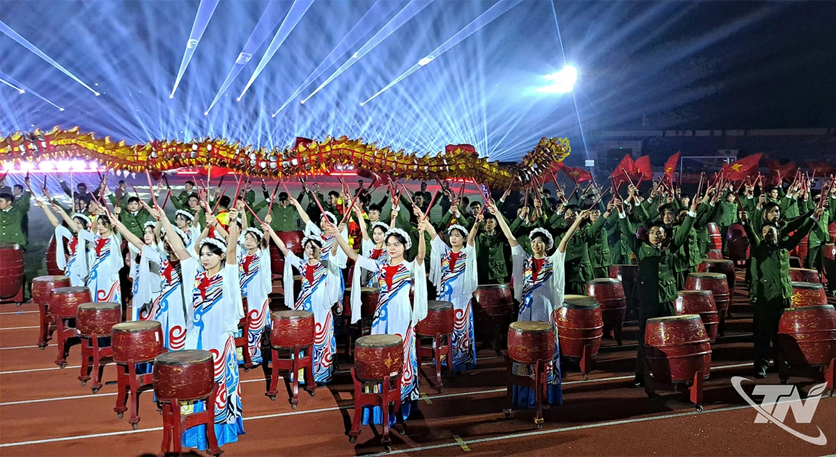 Màn trình diễn ánh sáng và sự tham gia của gần 1.000 cán bộ, chiến sĩ, diễn viên, sinh viên.