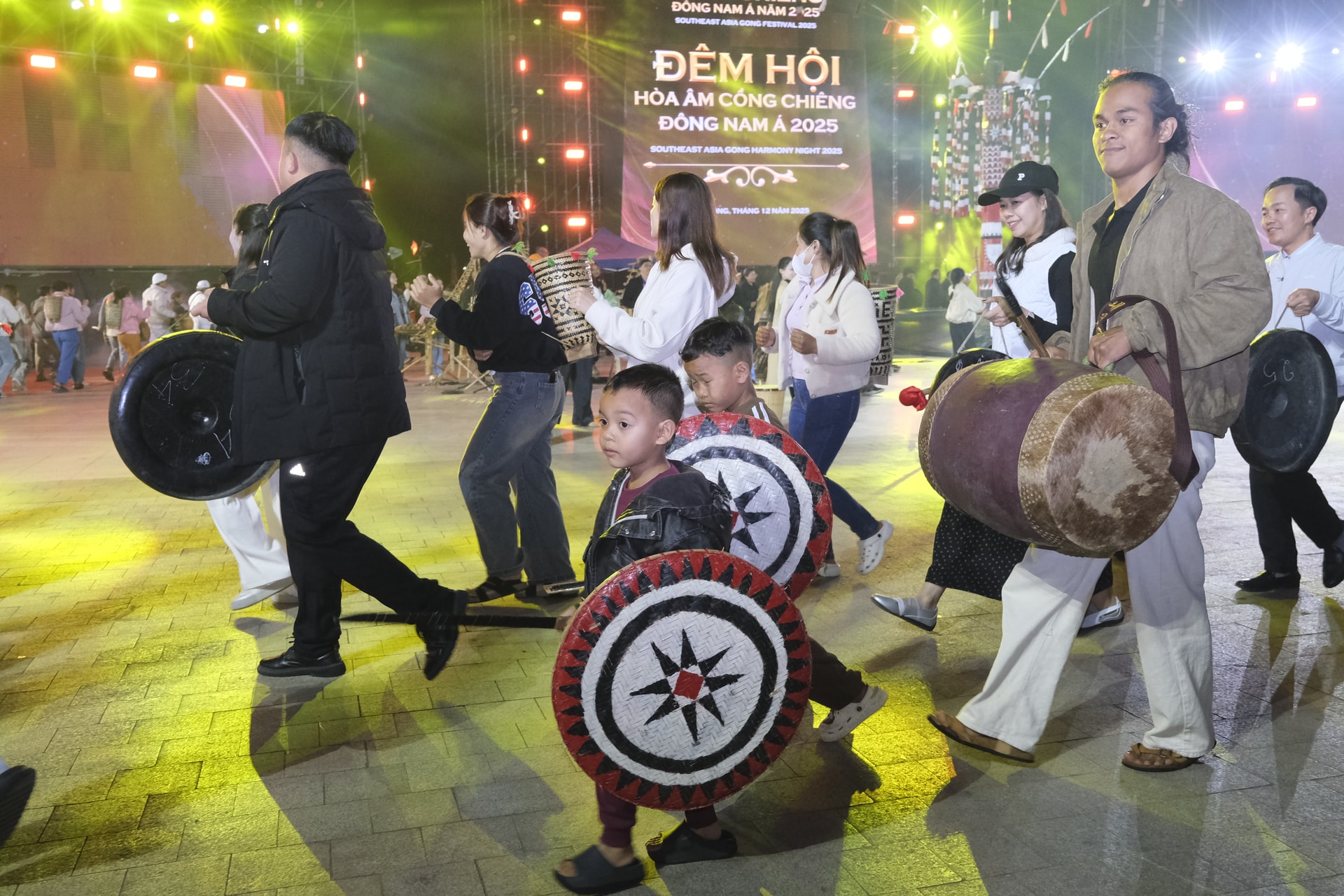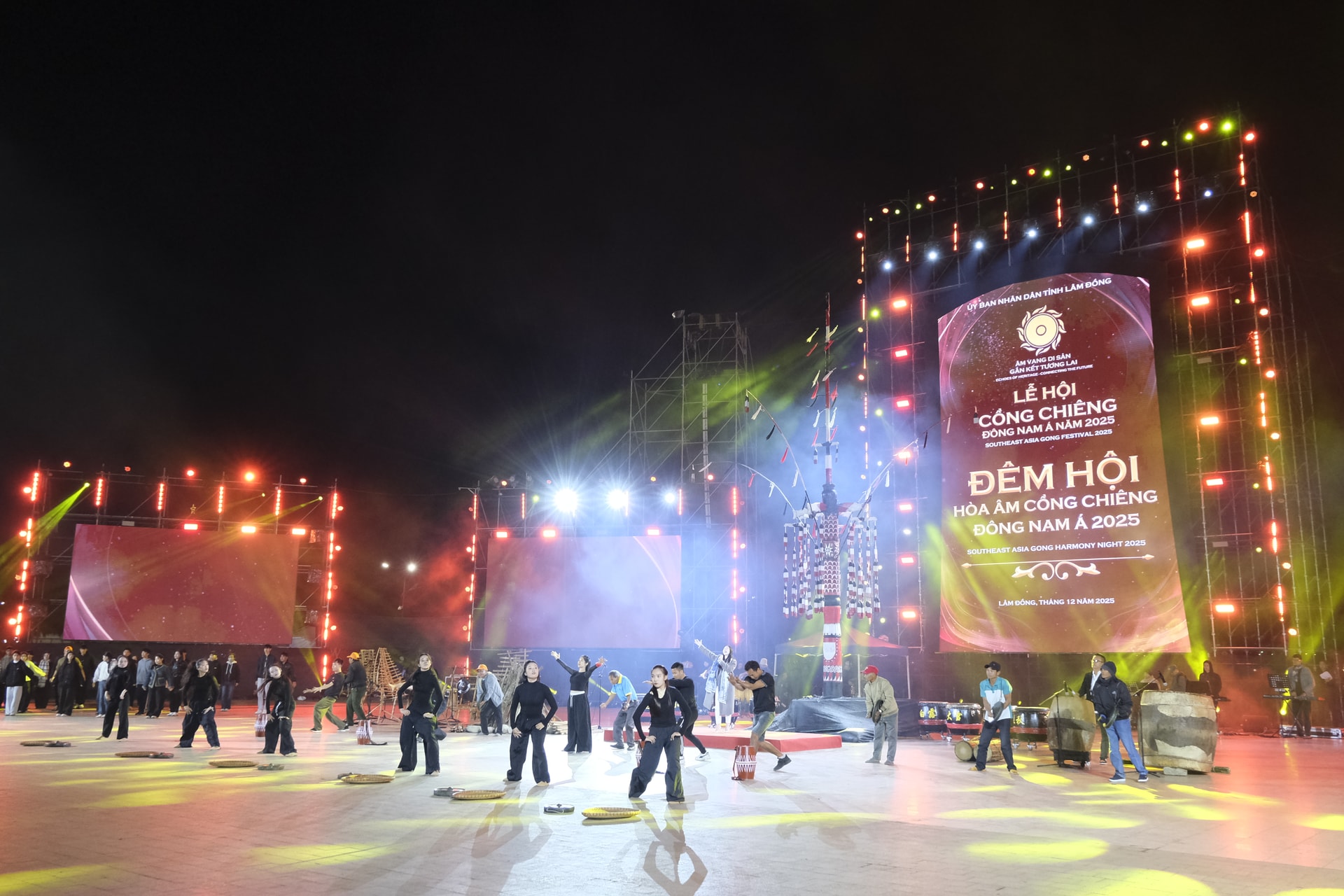 Tại buổi tổng duyệt, các nội dung trọng tâm của Đêm hội Hòa âm Cồng chiêng Đông Nam Á năm 2025 đã được dàn dựng công phu, kết hợp hài hòa giữa âm nhạc cồng chiêng truyền thống với các yếu tố nghệ thuật đương đại, ánh sáng và sân khấu hiện đại.