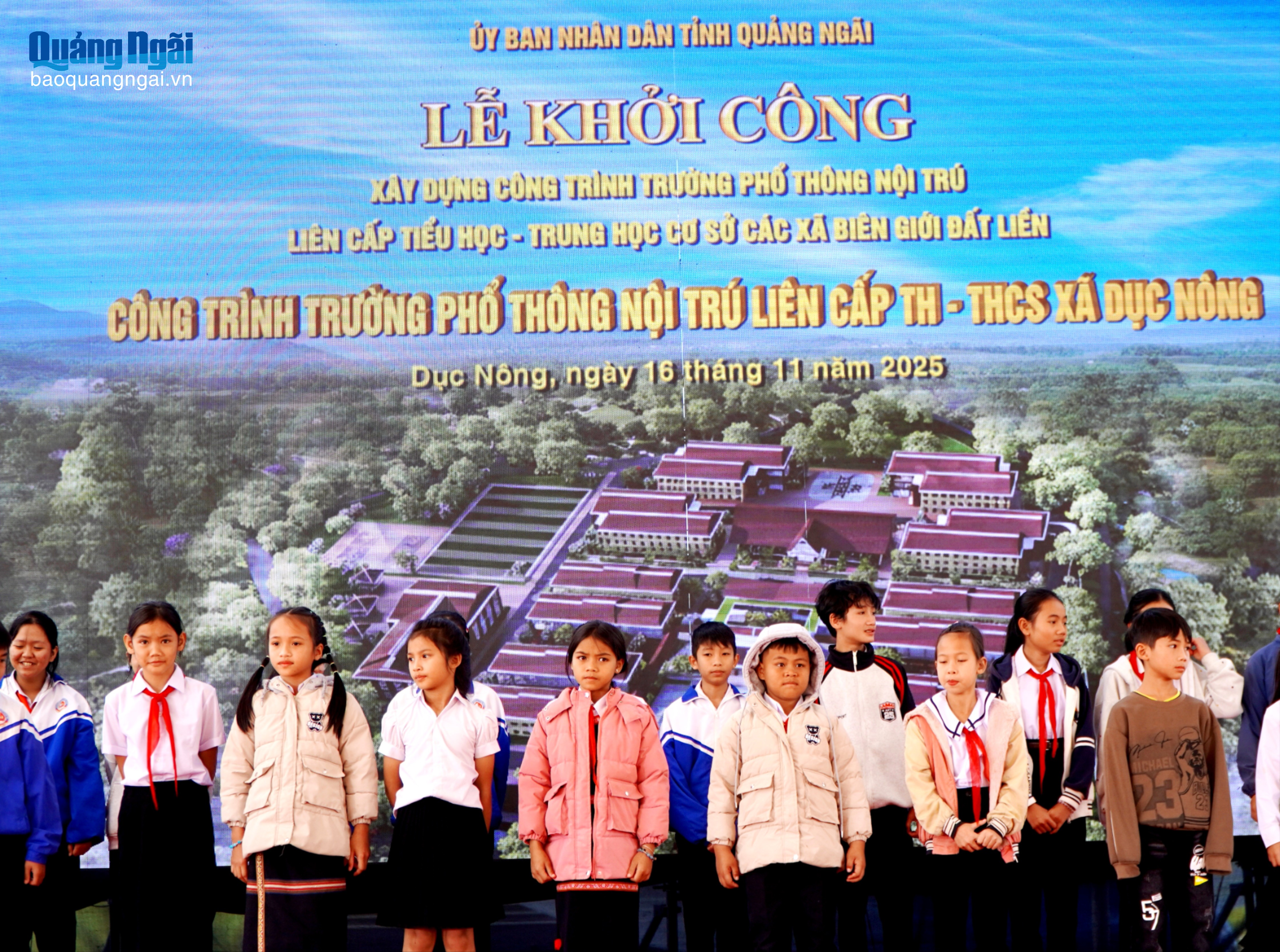 Lễ khởi công xây dựng công trình trường phổ thông nội trú liên cấp tiểu học - THCS do UBND tỉnh tổ chức đồng loạt tại 4 xã biên giới, được truyền hình trực tiếp tại điểm cầu chính xã Dục Nông và kết nối với 3 điểm cầu Rờ Kơi, Mô Rai, Sa Loong; được phát thanh trực tiếp và livestream trên các nền tảng của Báo và Phát thanh, Truyền hình Quảng Ngãi.