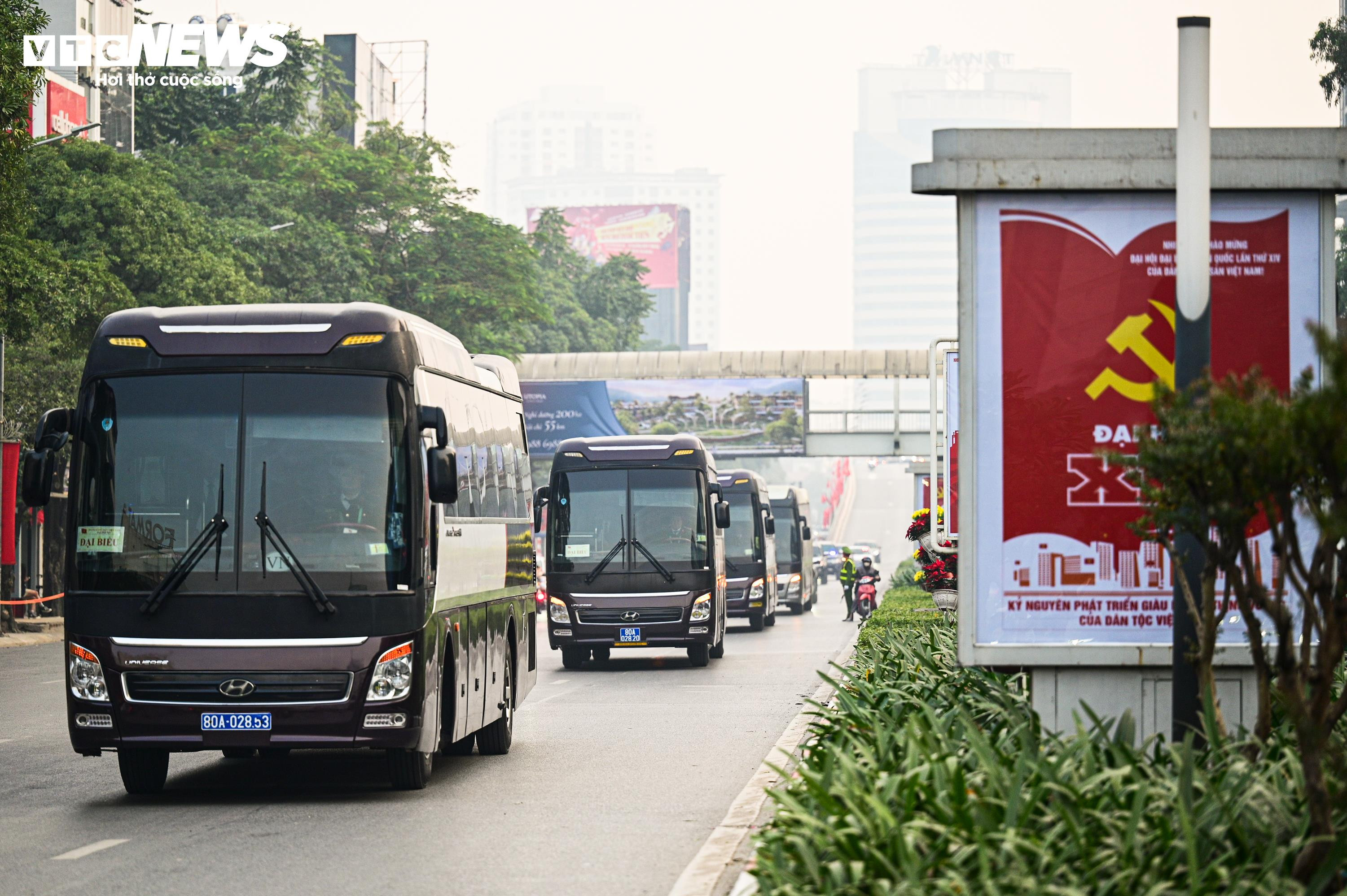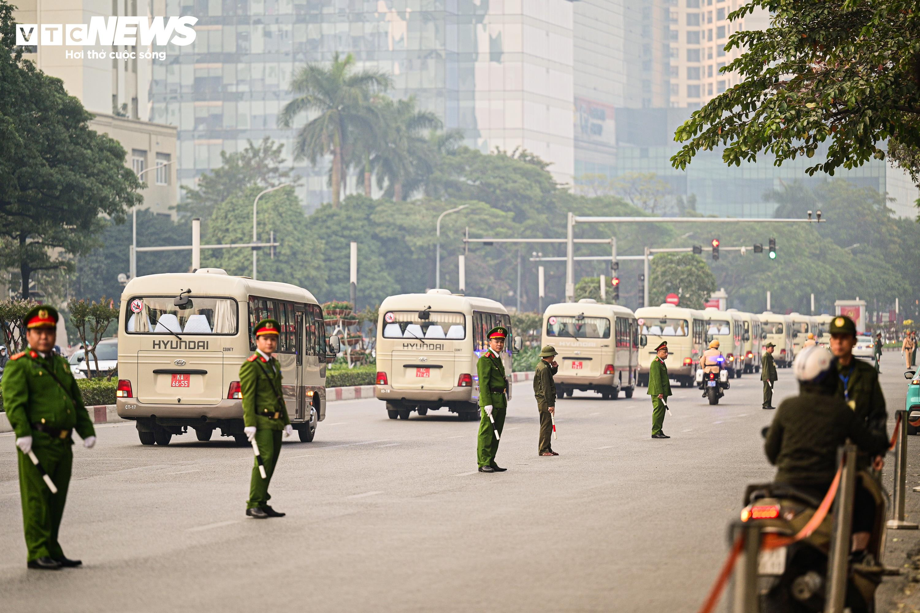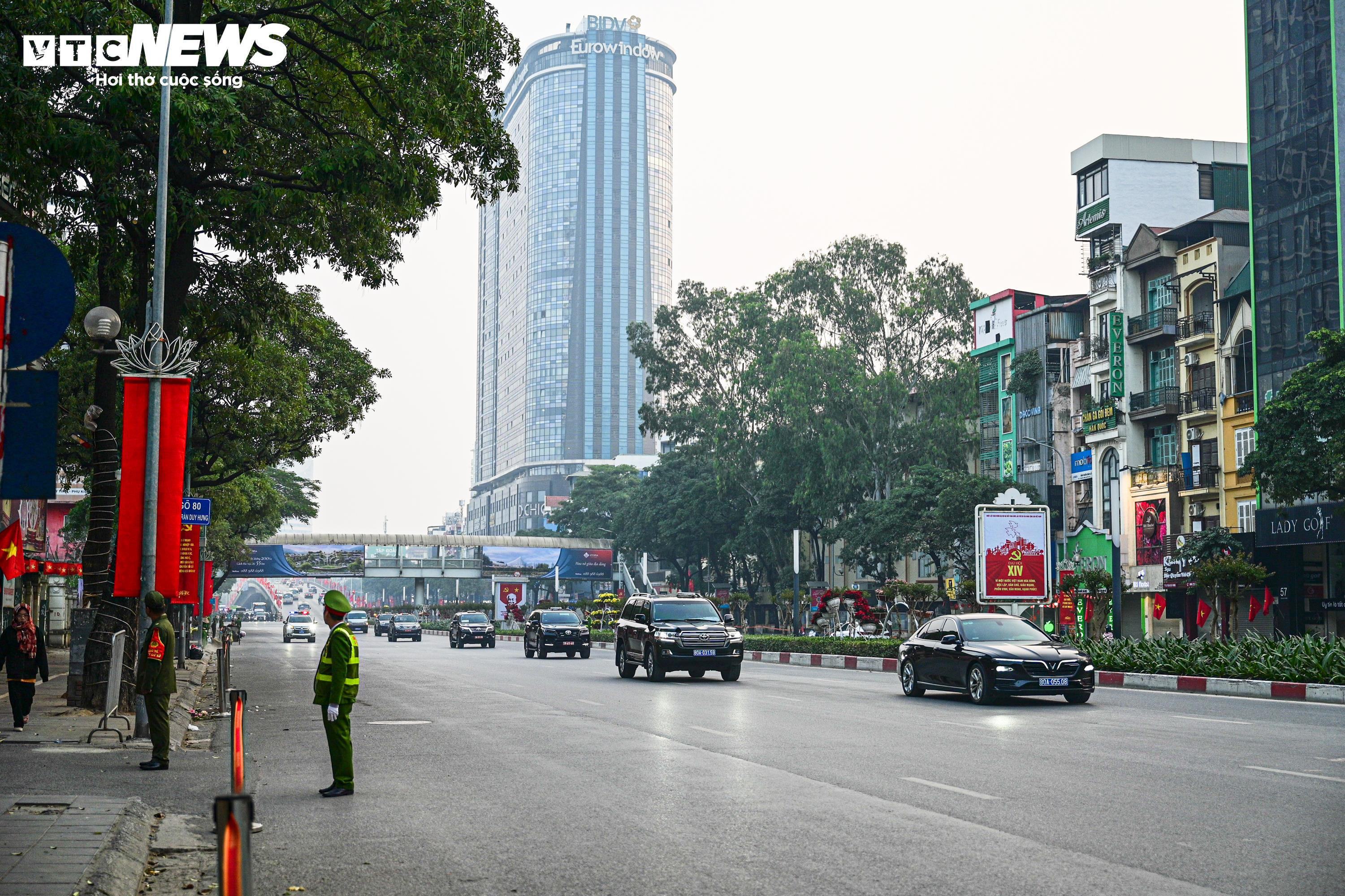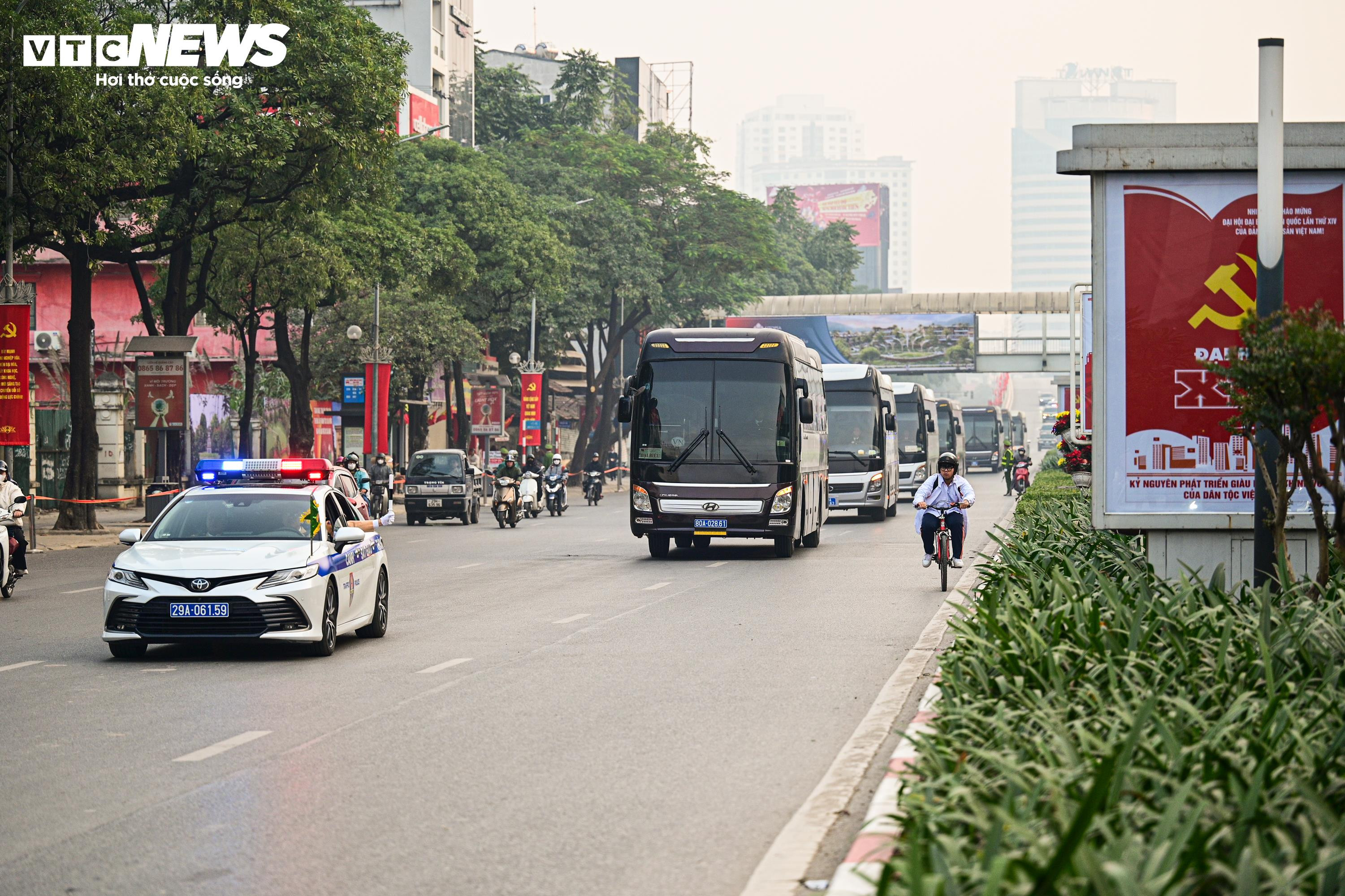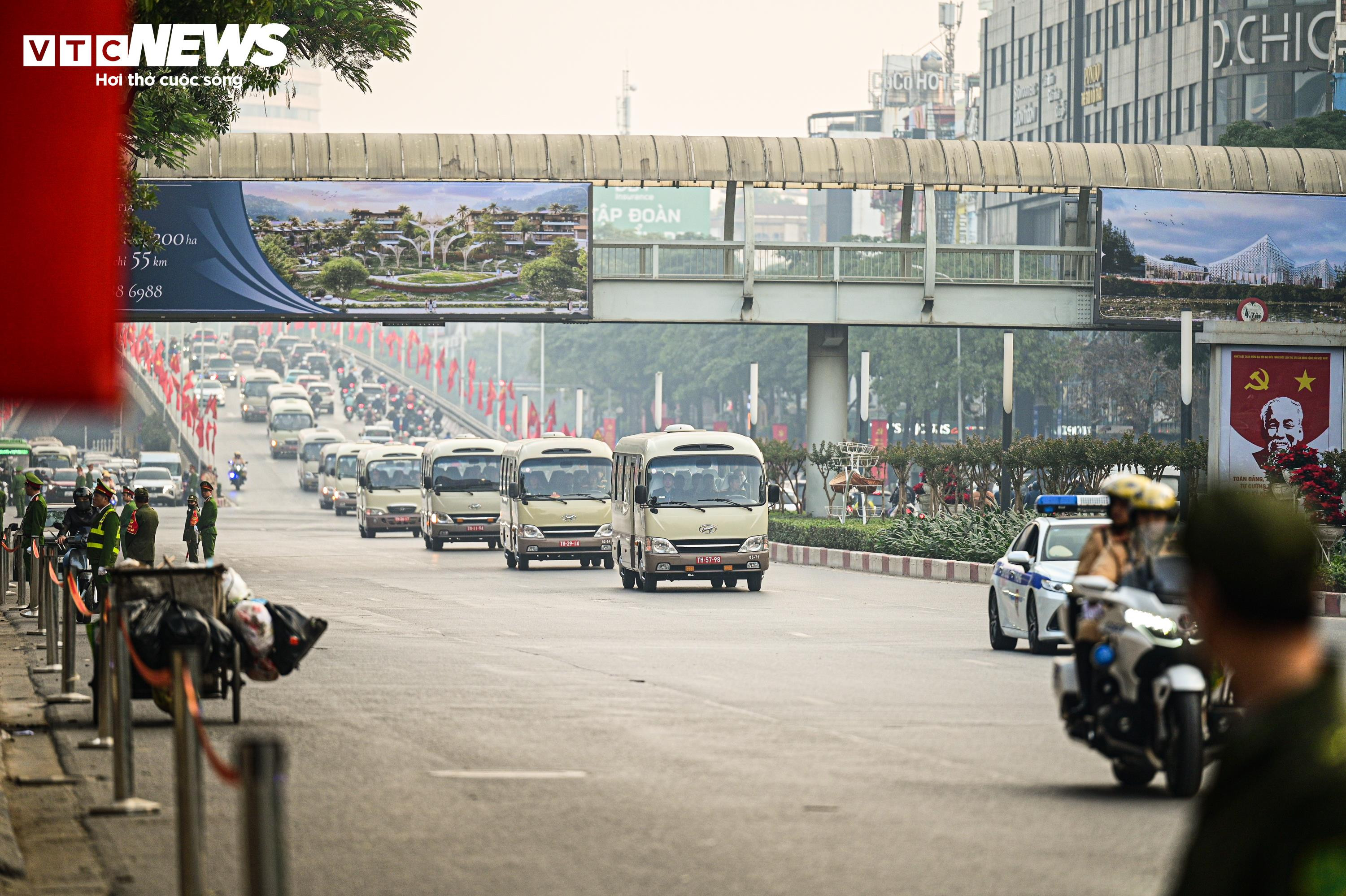Đoàn đại biểu di chuyển trên trục đường Trần Duy Hưng hướng về Trung tâm Hội nghị Quốc gia.