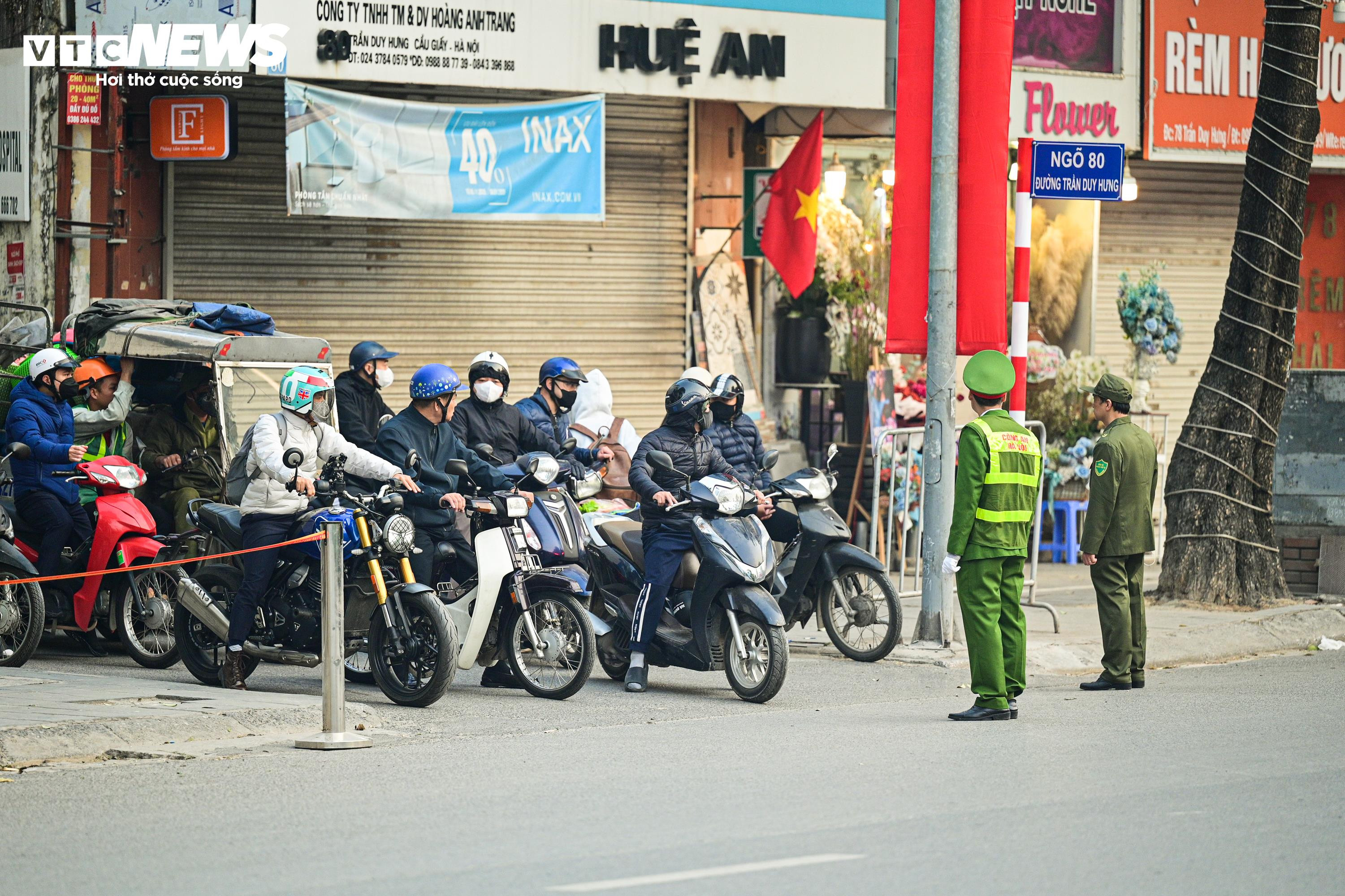 Tại khu vực đường Trần Duy Hưng hướng về Trung tâm Hội nghị Quốc gia và các chốt ngã ba, ngã tư, CSGT với vai trò nòng cốt phối hợp các lực lượng chức năng khác đảm bảo an ninh nghiêm ngặt.
