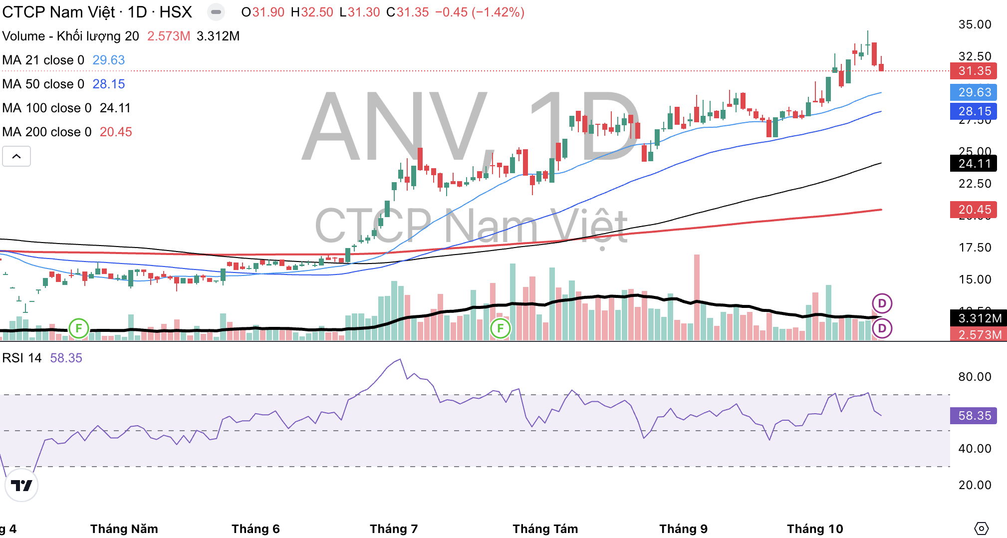 Bối cảnh muốn bán cổ phiếu của lãnh đạo khi cổ phiếu ANV vừa trải qua nhịp tăng mạnh, tính từ ngày 19/6 đến ngày 15/10, cổ phiếu ANV đã tăng 91,7%, từ 16.350 đồng lên 31.350 đồng/cổ phiếu và đang giao dịch vùng P/E là 136,05 lần so với trung bình ngành là 43,04 lần (CTCP Vĩnh Hoàn - VHC) đang giao dịch vùng P/E là 9,92 lần).