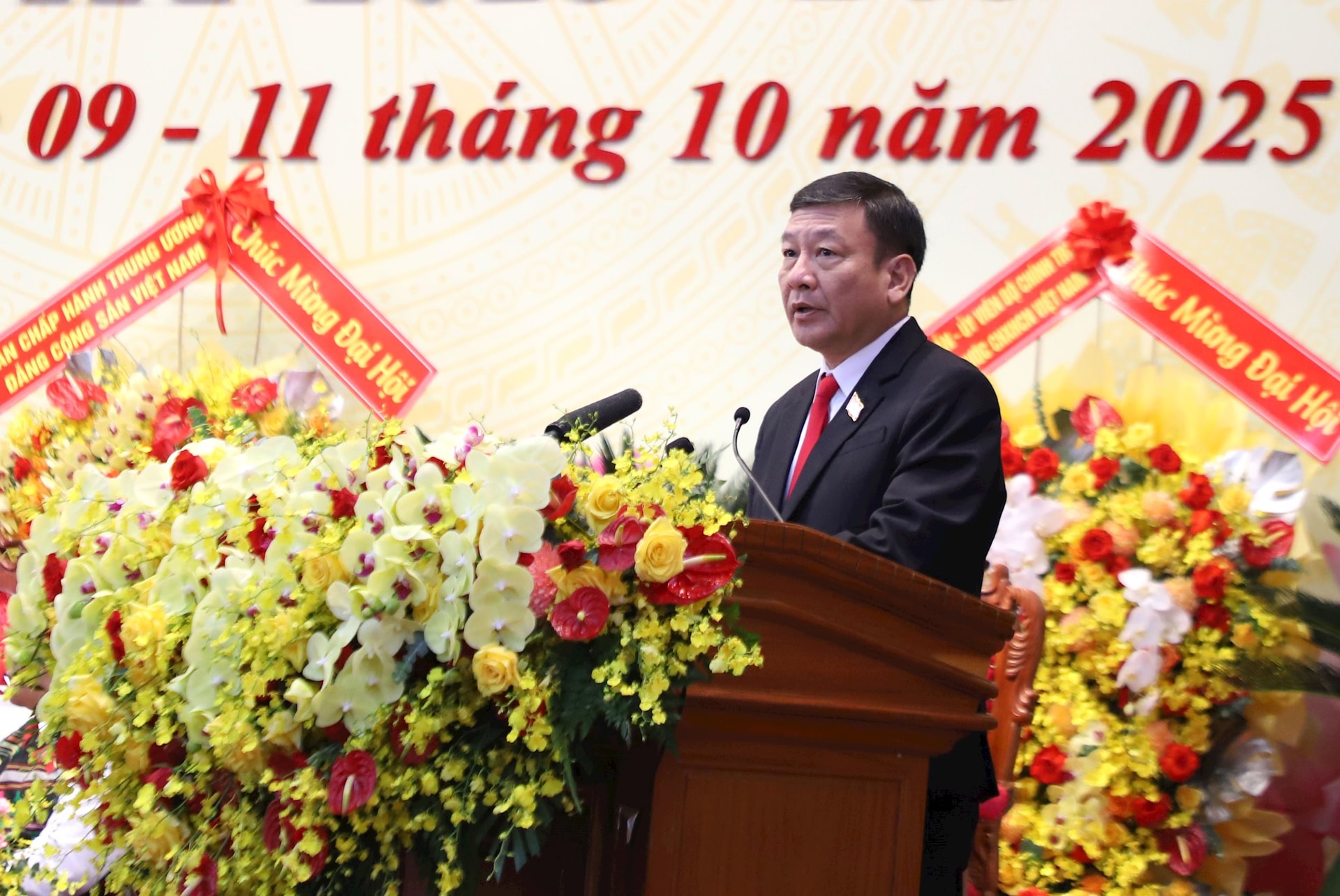Đồng chí Phó Bí thư Tỉnh ủy, Bùi Thắng báo cáo tổng hợp đóng góp ý kiến vào dự thảo Văn kiện Đại hội đại biểu toàn quốc lần thứ XIV của Đảng