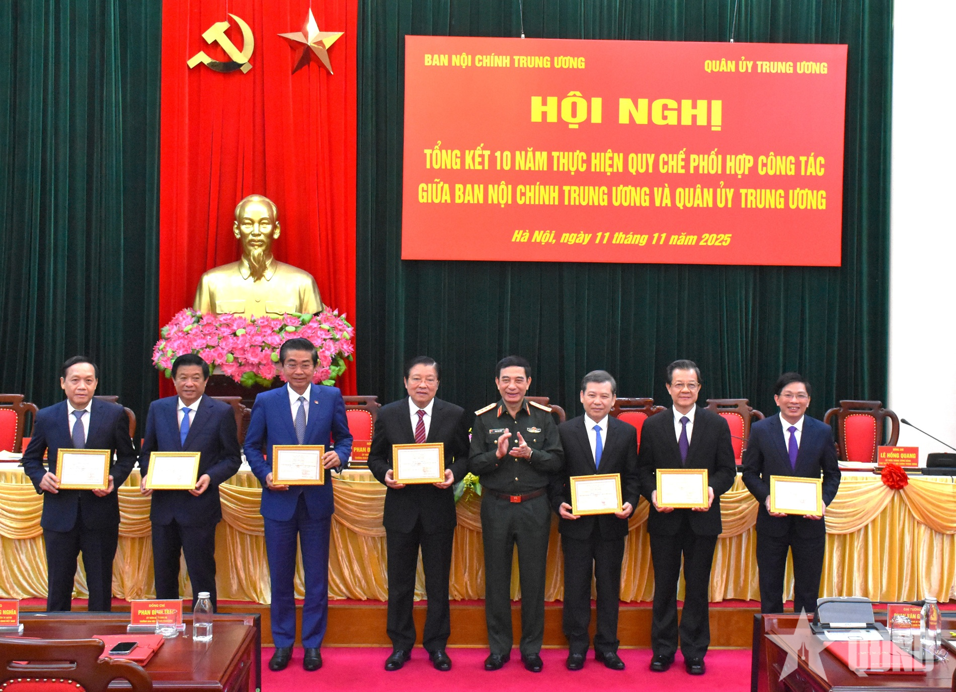 Đại tướng Nguyễn Trọng Nghĩa trao Bằng khen tặng các tập thể thuộc Ban Nội chính Trung ương có thành tích xuất sắc trong thực hiện Quy chế phối hợp công tác.