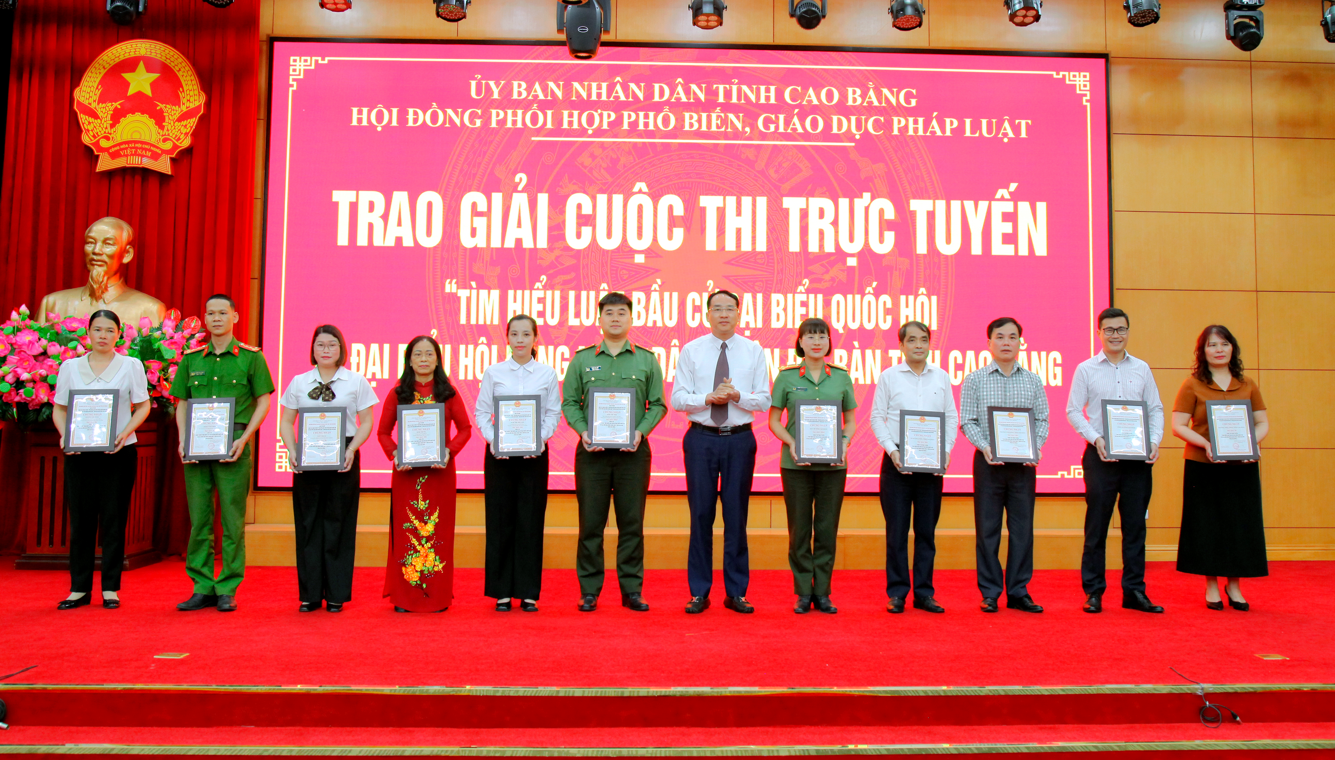 Hội đồng phối hợp phổ biến, giáo dục pháp luật trao 11 giải Nhất, Nhì, Ba cho các 5 tập thể, 6 cá nhân đạt thành tích cao tại Cuộc thi trực tuyến “Tìm hiểu Luật Bầu cử đại biểu Quốc hội và đại biểu HĐND” trên địa bàn tỉnh Cao Bằng.