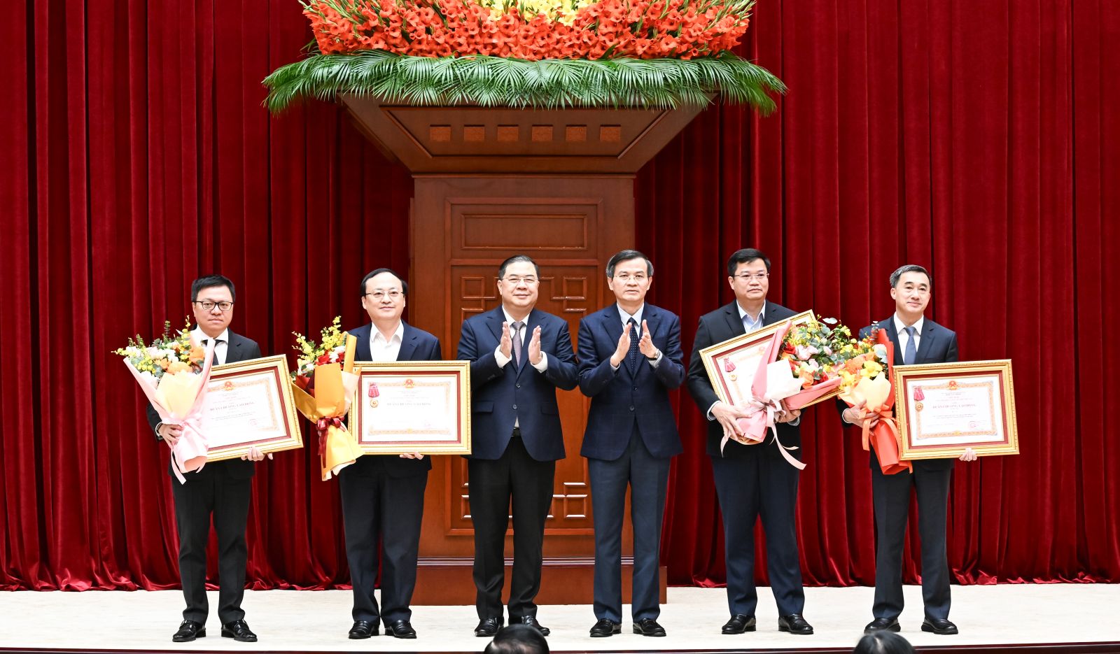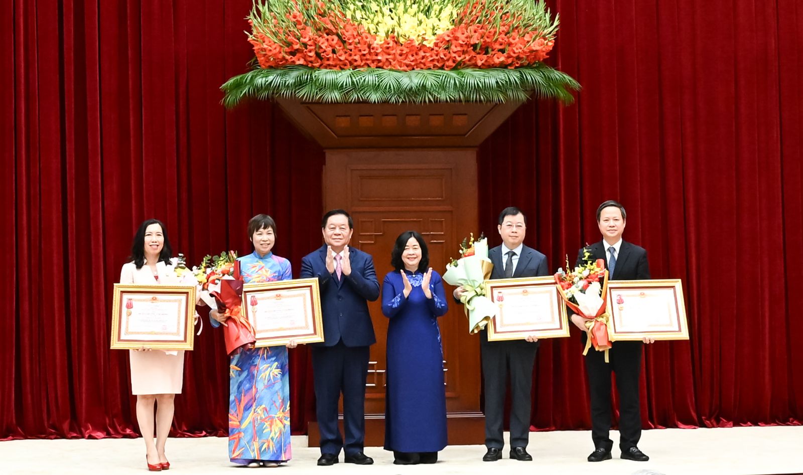 Đồng chí Thường trực Ban Bí thư Trần Cẩm Tú trao Huân chương Lao động hạng Nhất tặng các cơ quan có thành tích xuất sắc, đột xuất trong công tác tham mưu, tổ chức, phục vụ Đại hội XIV của Đảng.
