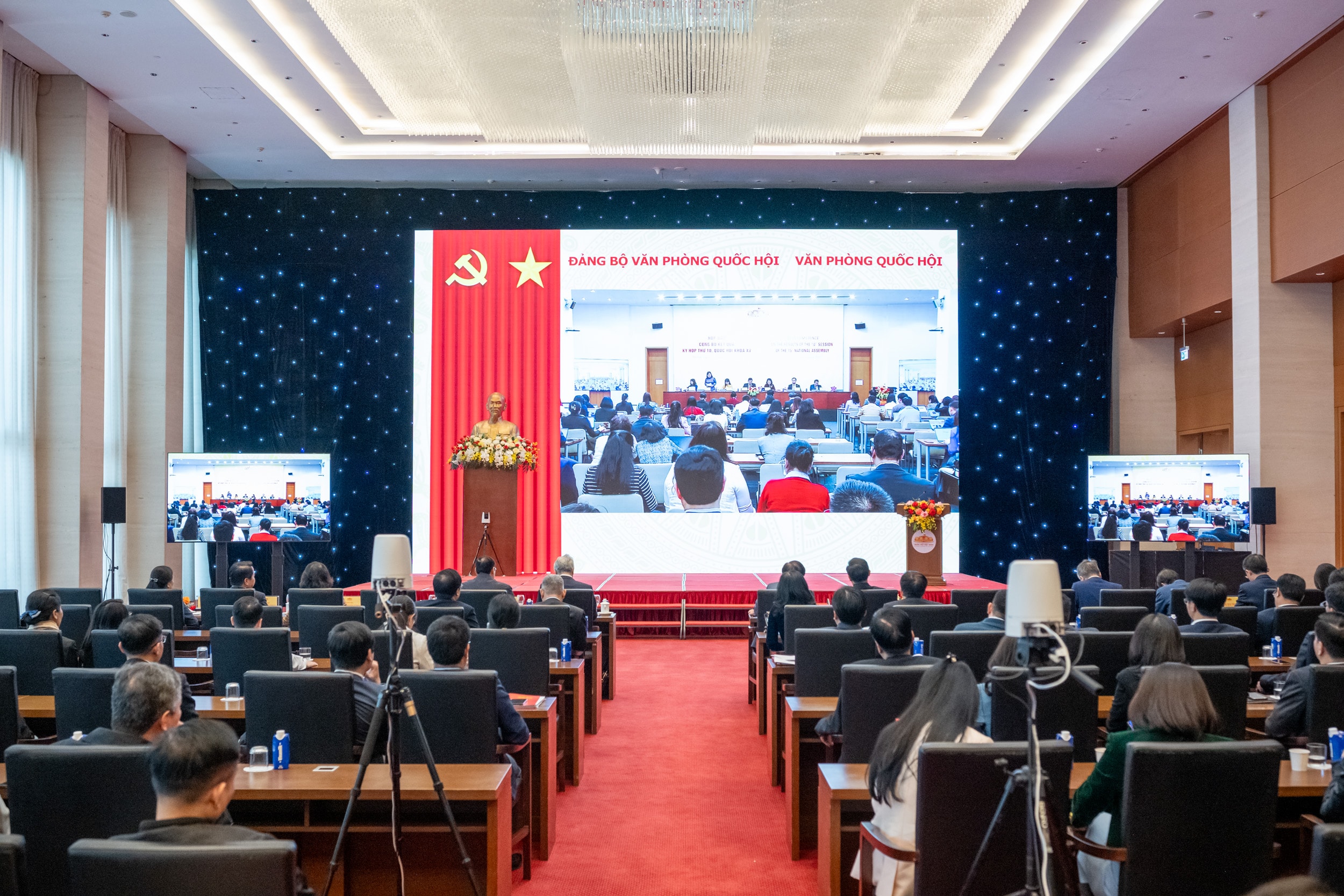 Toàn cảnh Hội nghị tổng kết công tác của Đảng bộ VPQH và công tác chuyên môn VPQH năm 2025; triển khai nhiệm vụ năm 2026 tại điểm cầu 35 Ngô Quyền. Ảnh: Quang Khánh