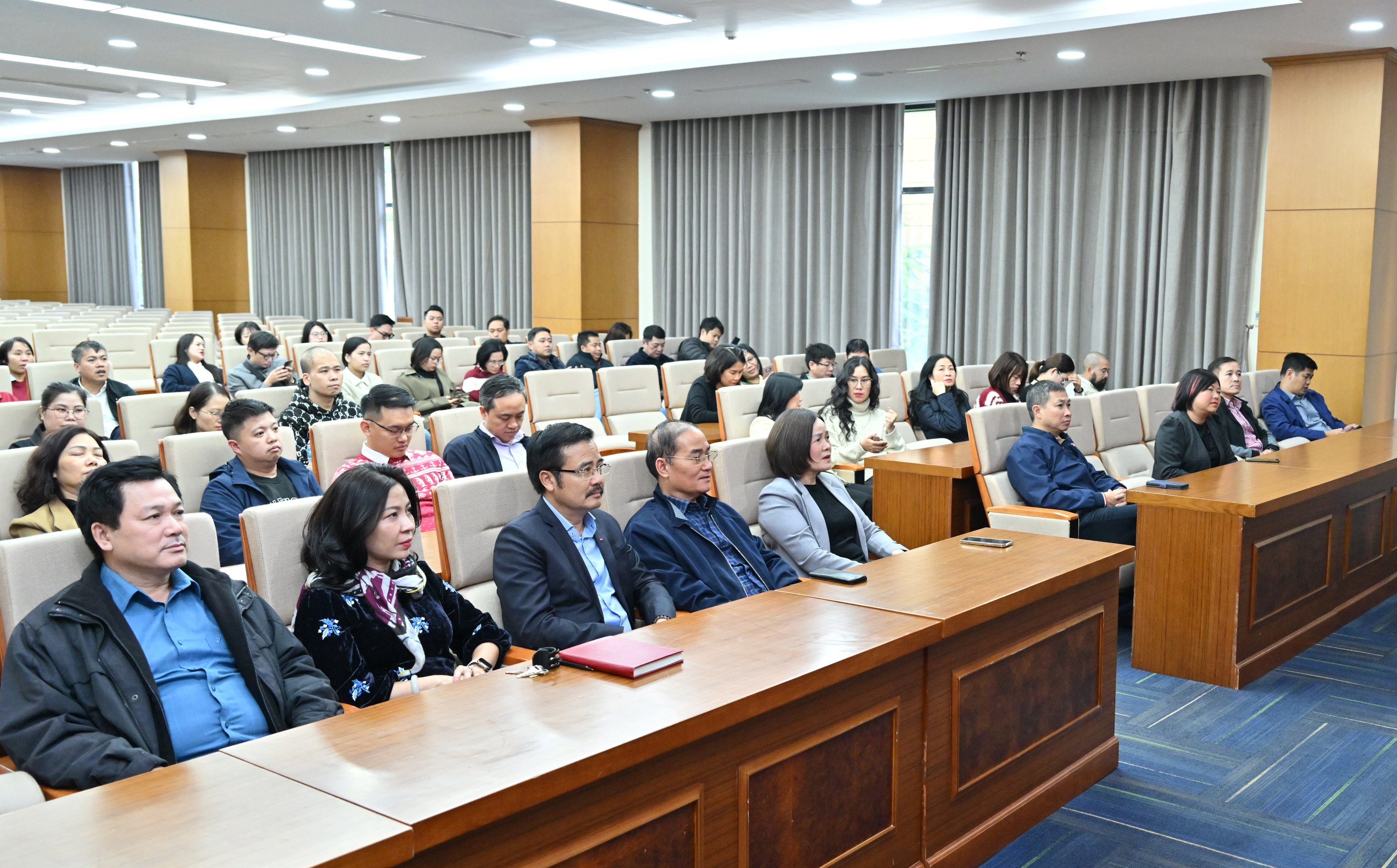 Các đại biểu tham dự Hội nghị tổng kết công tác Đảng bộ Văn phòng Quốc hội và công tác chuyên môn của Văn phòng Quốc hội năm 2025 và triển khai nhiệm vụ năm 2026 tại điểm cầu 35 Ngô Quyền. Ảnh: Quang Khánh