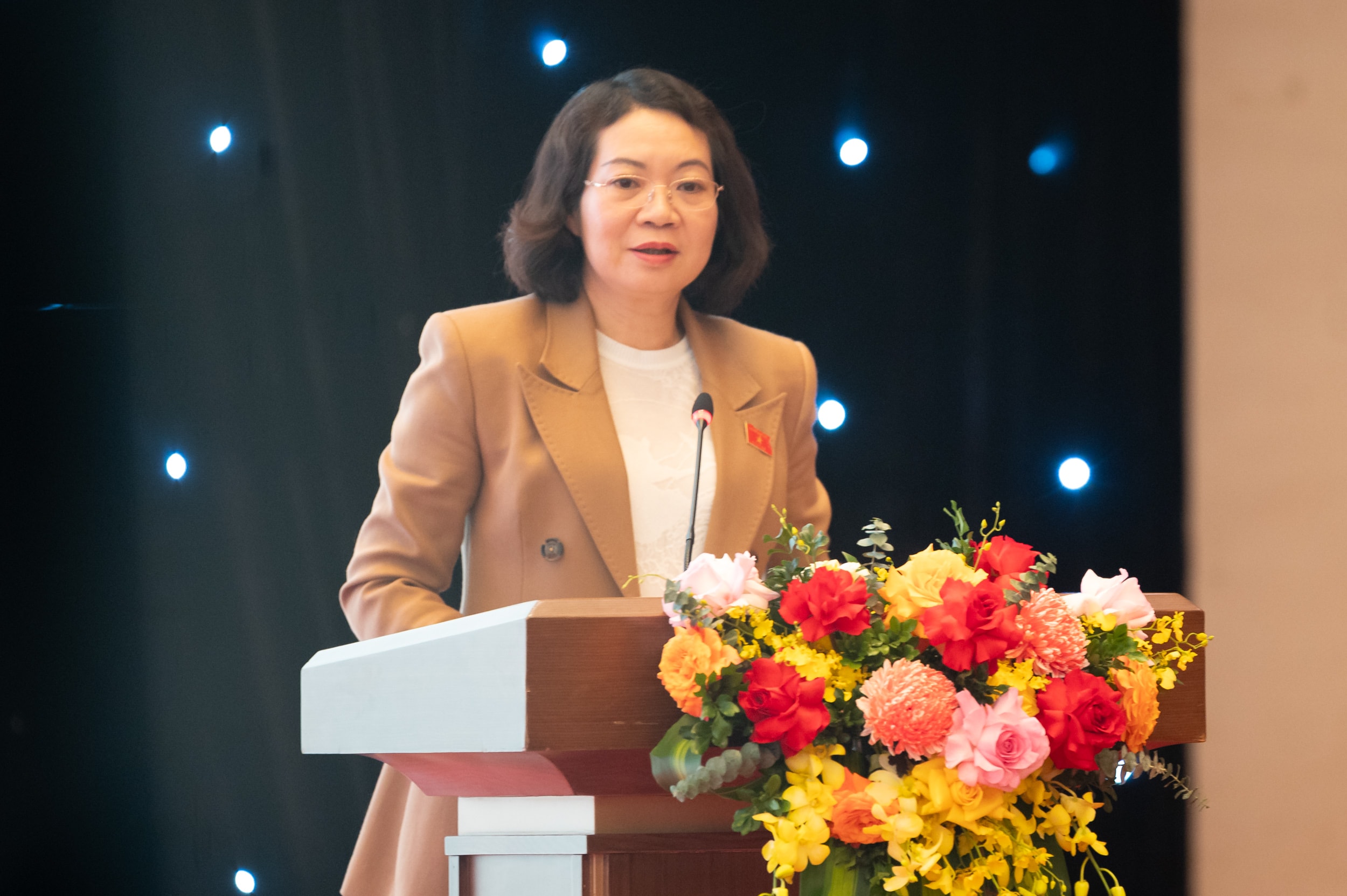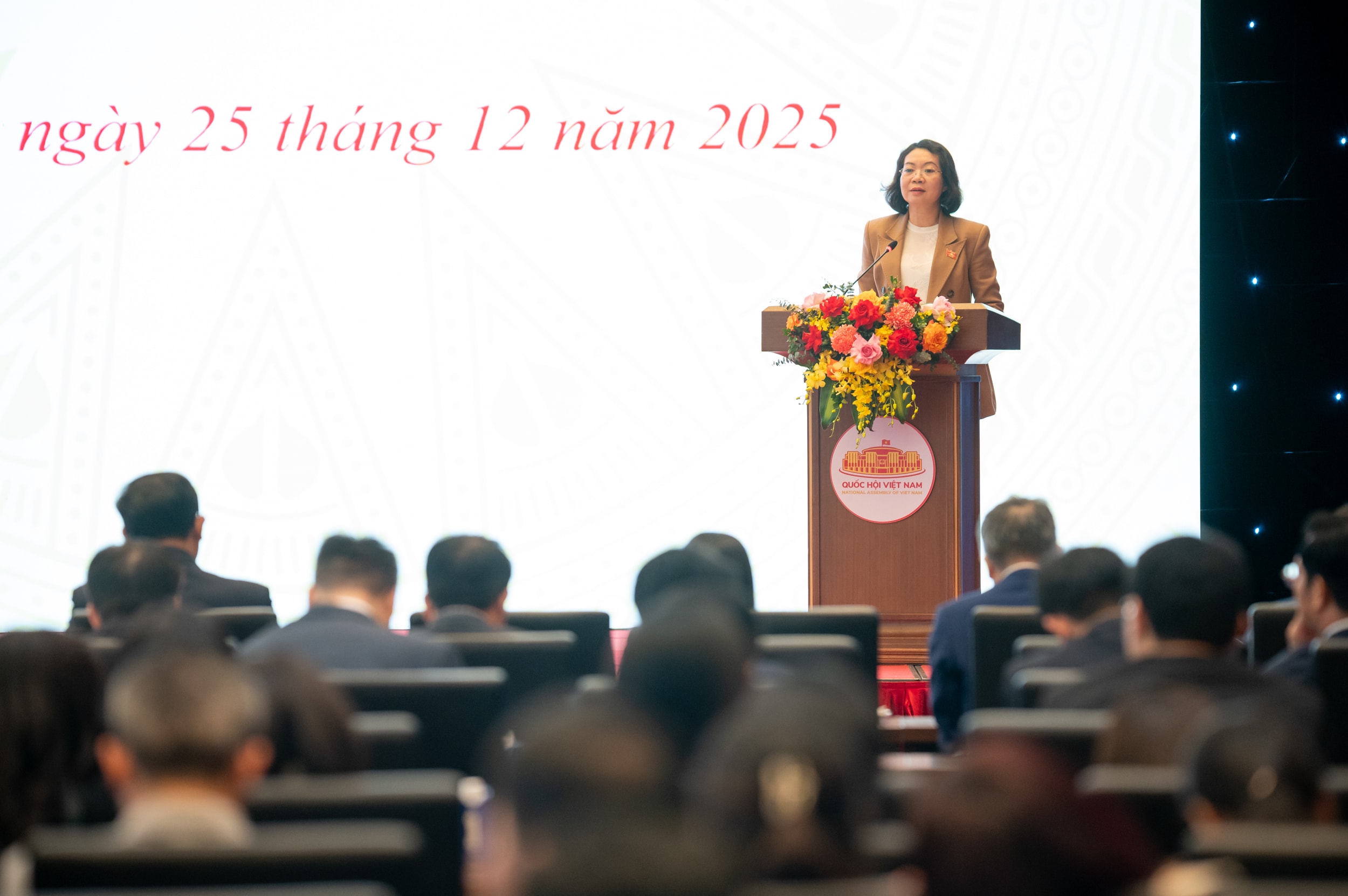 Phó Chủ nhiệm Ủy ban Pháp luật và Tư pháp Mai Thị Phương Hoa trình bày tham luận tại Hội nghị tổng kết công tác Đảng bộ Văn phòng Quốc hội và công tác chuyên môn của Văn phòng Quốc hội năm 2025 và triển khai nhiệm vụ năm 2026. Ảnh: Phạm Thắng