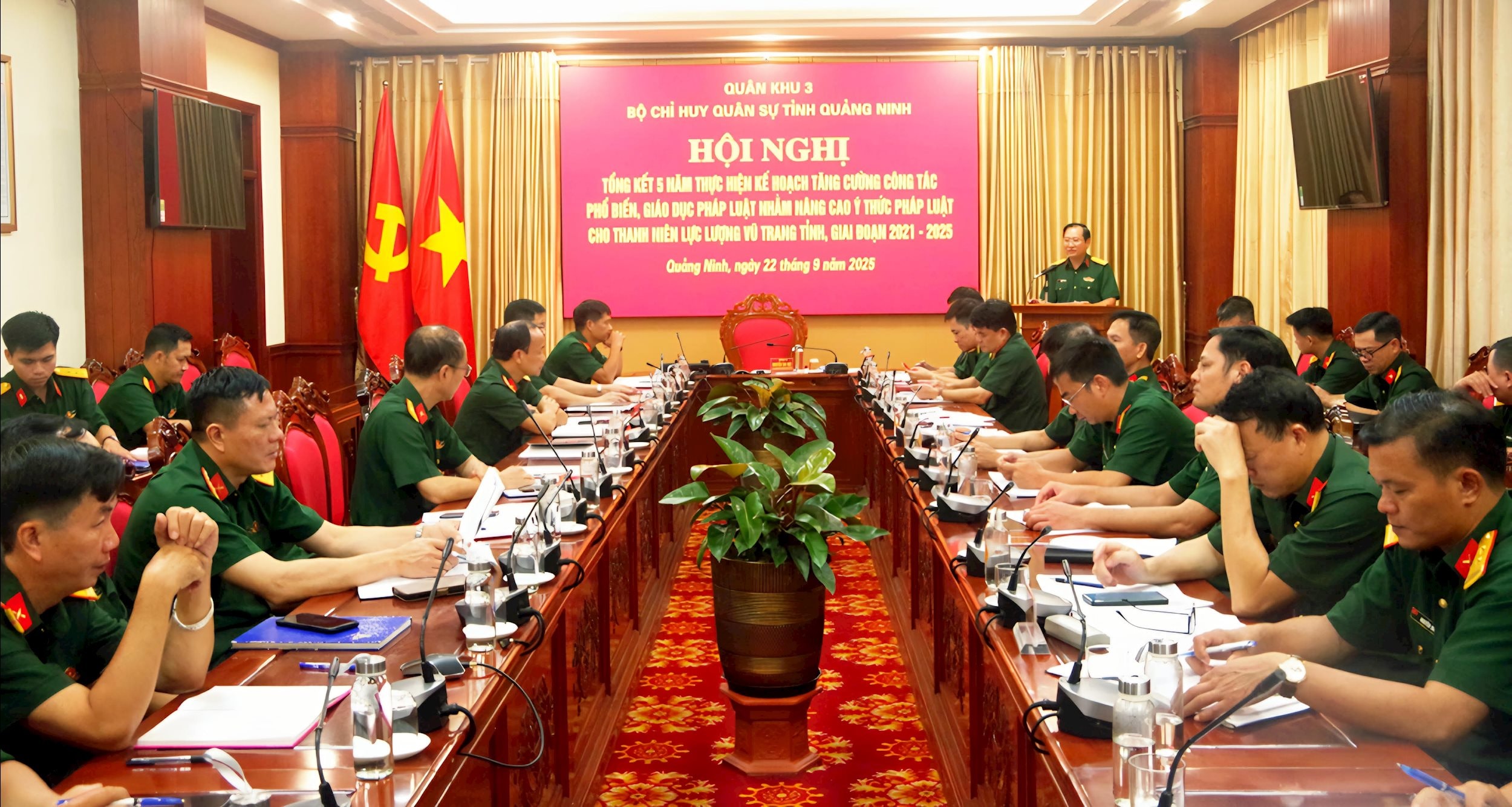 Đó là thông tin được đưa ra tại Hội nghị Tổng kết 5 năm thực hiện kế hoạch tăng cường công tác PBGDPL nhằm nâng cao ý thức pháp luật cho thanh niên lực lượng vũ trang, giai đoạn 2021 - 2025, do Bộ CHQS tỉnh Quảng Ninh vừa tổ chức.
