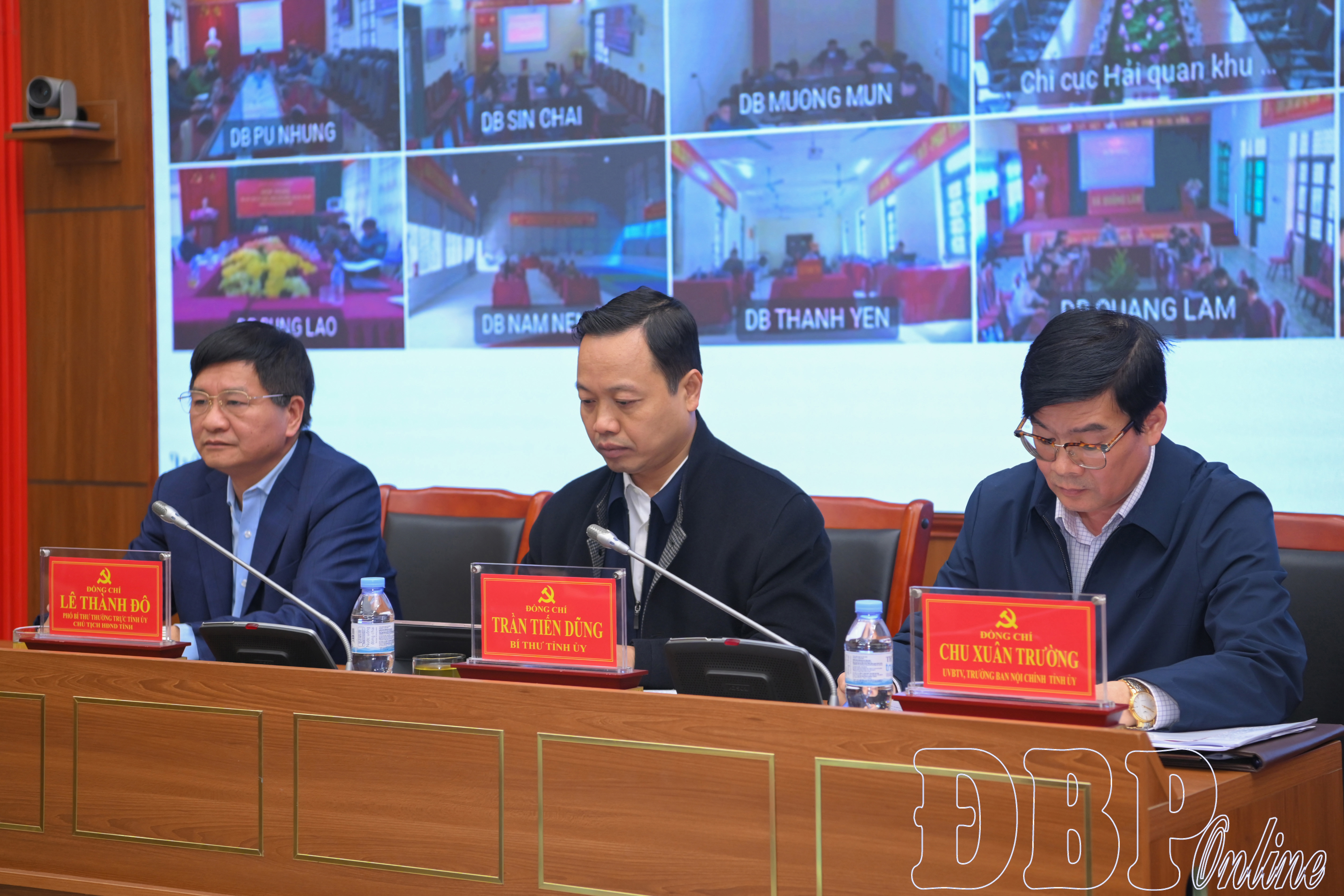Các đồng chí: Trần Tiến Dũng, Bí thư Tỉnh ủy; Lê Thành Đô, Phó Bí thư Thường trực Tỉnh ủy, Chủ tịch HĐND tỉnh; Chu Xuân Trường, Ủy viên Ban Thường vụ, Trưởng Ban Nội chính Tỉnh ủy đồng chủ trì hội nghị tại điểm cầu tỉnh.