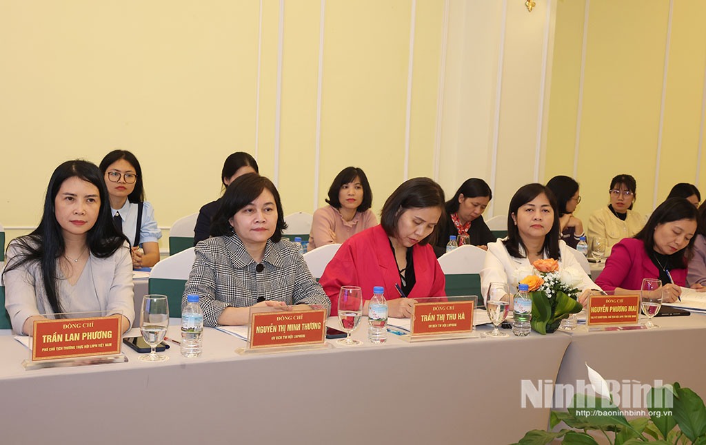 Tham dự hội nghị còn có các đồng chí trong đoàn công tác phụ trách cụm thi đua; các đồng chí Tỉnh ủy viên là Phó Chủ tịch Ủy ban Mặt trận Tổ quốc Việt Nam tỉnh, Chủ tịch Hội LHPN một số tỉnh trung du và đồng bằng sông Hồng; đại diện Văn phòng Tỉnh ủy, Văn phòng UBND tỉnh Ninh Bình; đại diện Ban Công tác Phụ nữ Hội LHPN các tỉnh trong Cụm thi đua.