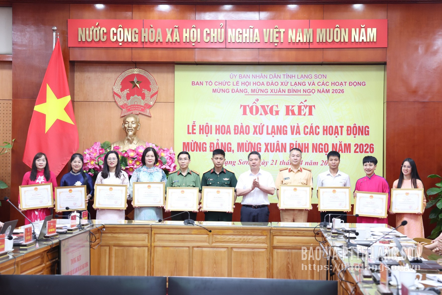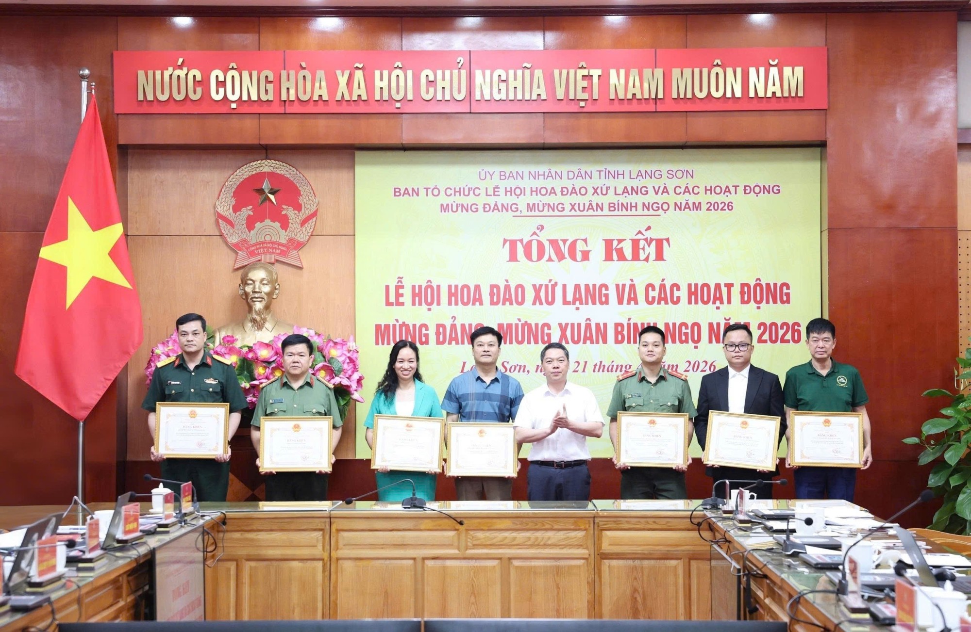 Nhân dịp này, 7 tập thể và 10 cá nhân vinh dự được nhận Bằng khen của Chủ tịch UBND tỉnh vì đã có thành tích tiêu biểu, xuất sắc trong tổ chức Lễ hội Hoa Đào Xứ Lạng và các hoạt động mừng Đảng, mừng Xuân Bính Ngọ năm 2026.