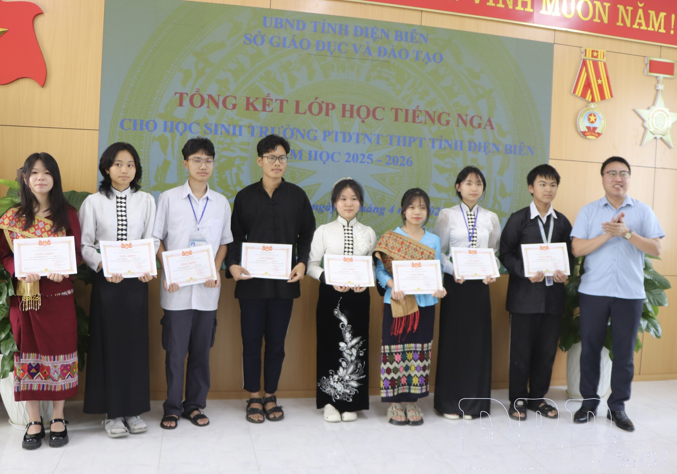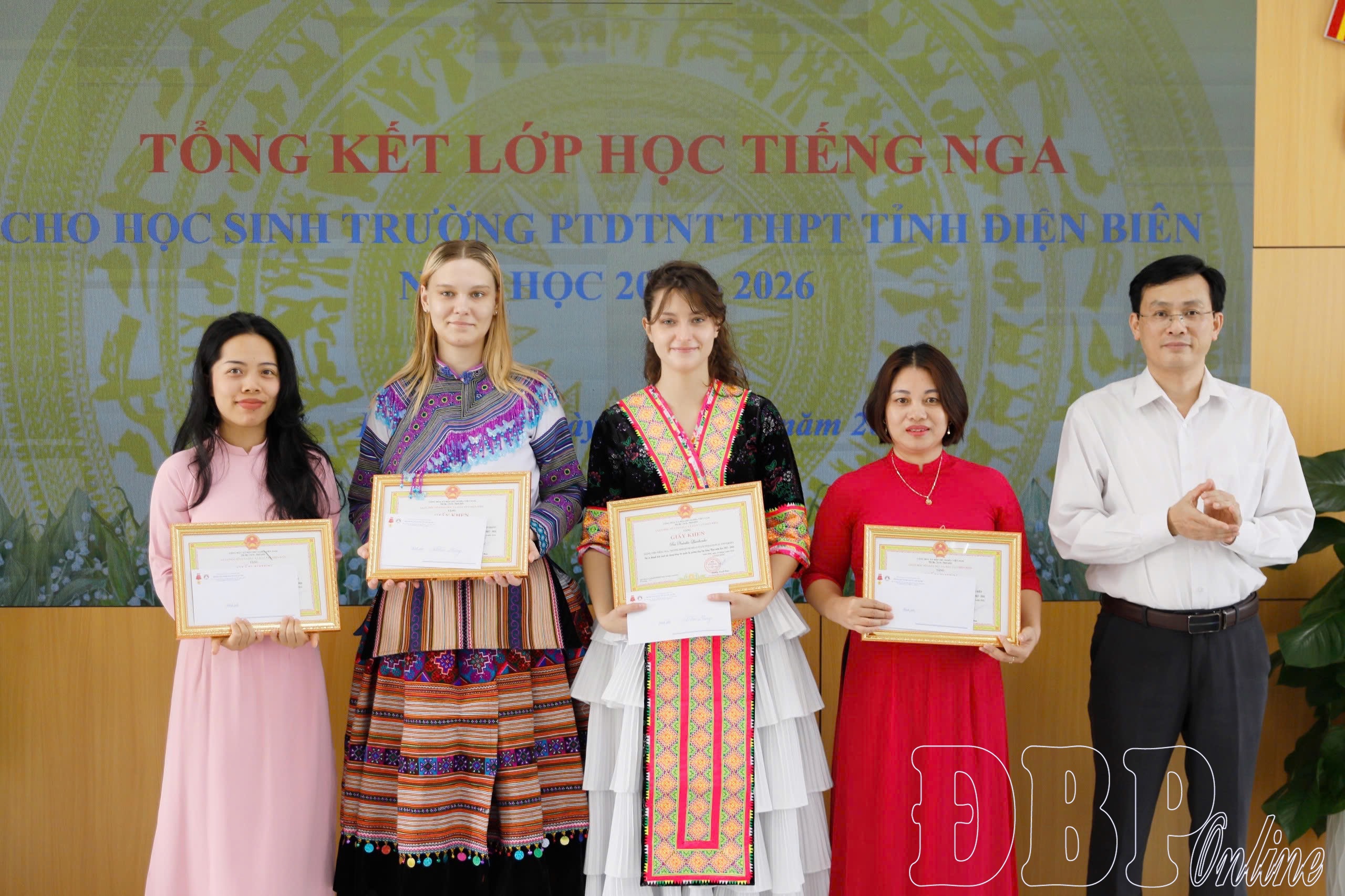 Nhân dịp này, Sở Giáo dục và Đào tạo tặng Giấy khen cho 5 cán bộ, giáo viên đã có thành tích xuất sắc trong công tác quản lý, giảng dạy lớp tiếng Nga; Trường PTDTNT THPT tỉnh Điện Biên tặng Giấy khen cho 8 học sinh có thành tích xuất sắc tham gia học lớp tiếng Nga, năm học 2025 - 2026.