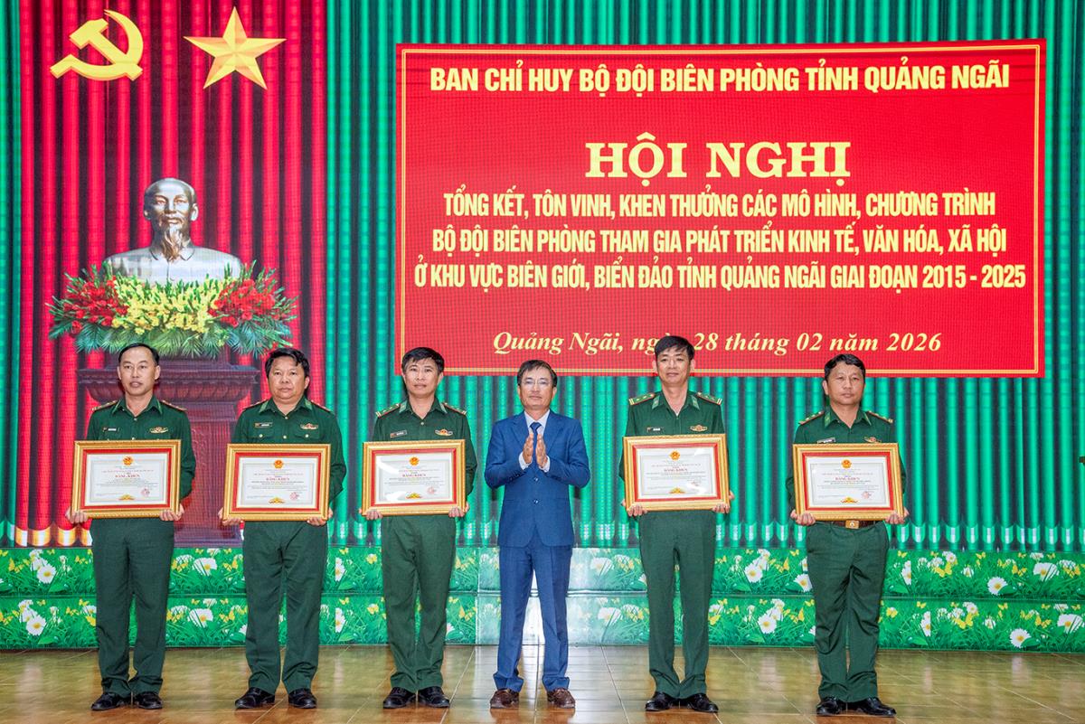 Nhân dịp này, Ủy ban nhân dân tỉnh Quảng Ngãi đã tặng bằng khen cho 5 tập thể và 10 cá nhân; Bộ Tư lệnh Bộ đội Biên phòng tặng bằng khen cho 35 tập thể và 137 cá nhân đã có thành tích xuất sắc trong tham gia thực hiện các mô hình, chương trình, phong trào Bộ đội Biên phòng tham gia phát triển kinh tế, văn hóa, xã hội ở khu vực biên giới giai đoạn 2015 - 2025.