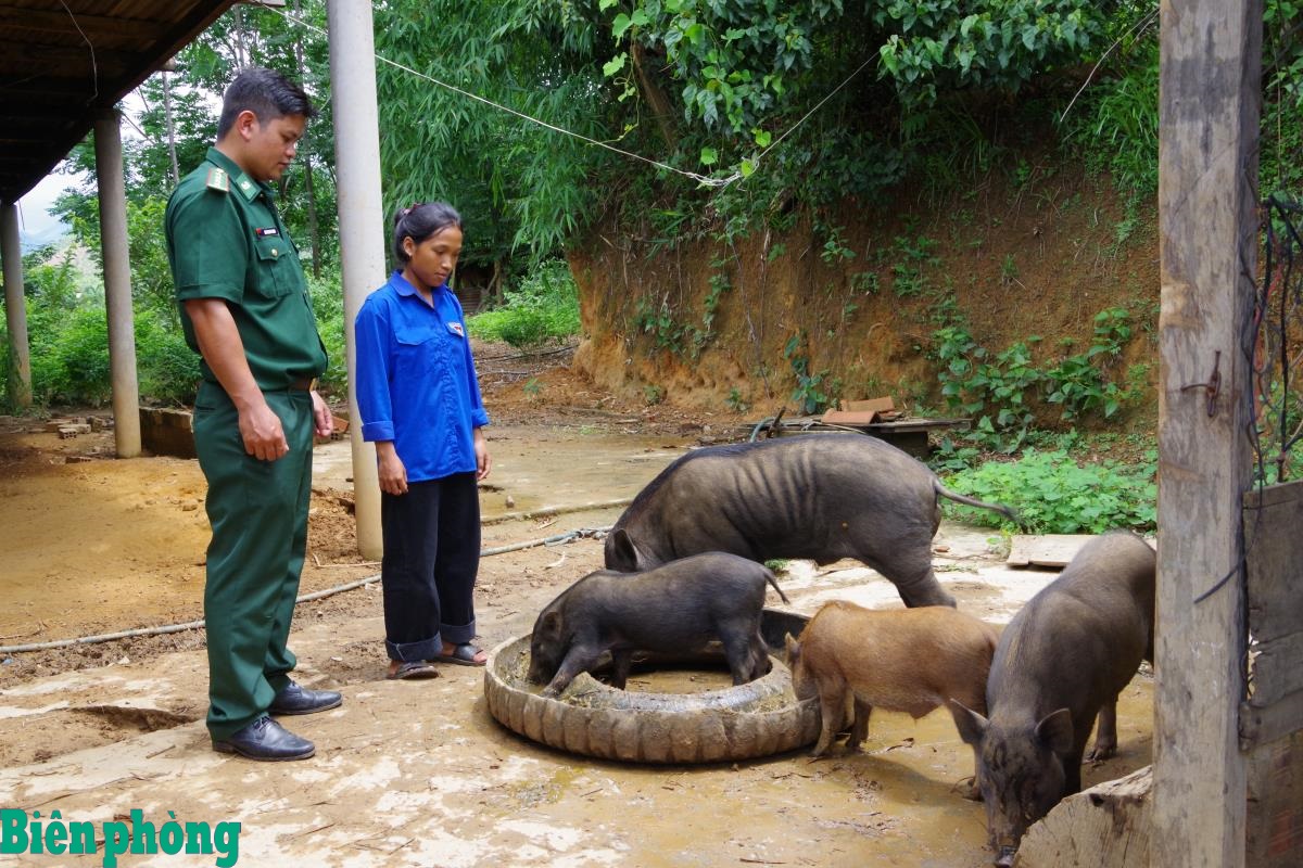 Đồn Biên phòng Đắk Long hỗ trợ phụ nữ nghèo thực hiện mô hình nuôi heo đen để xóa đói giảm nghèo. Ảnh: Lê Văn Chương