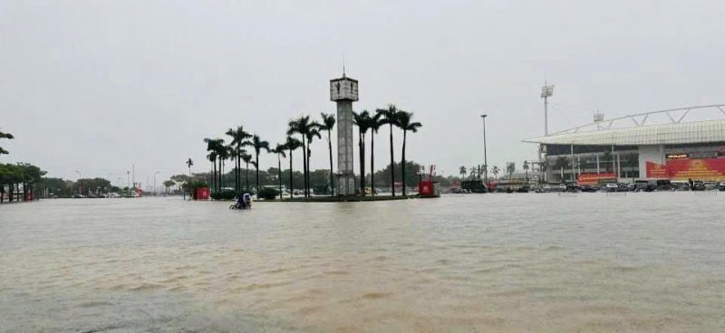 Khu vực sân vận động Mỹ Đình (phường Từ Liêm, Hà Nội) ngập sâu trong biển nước