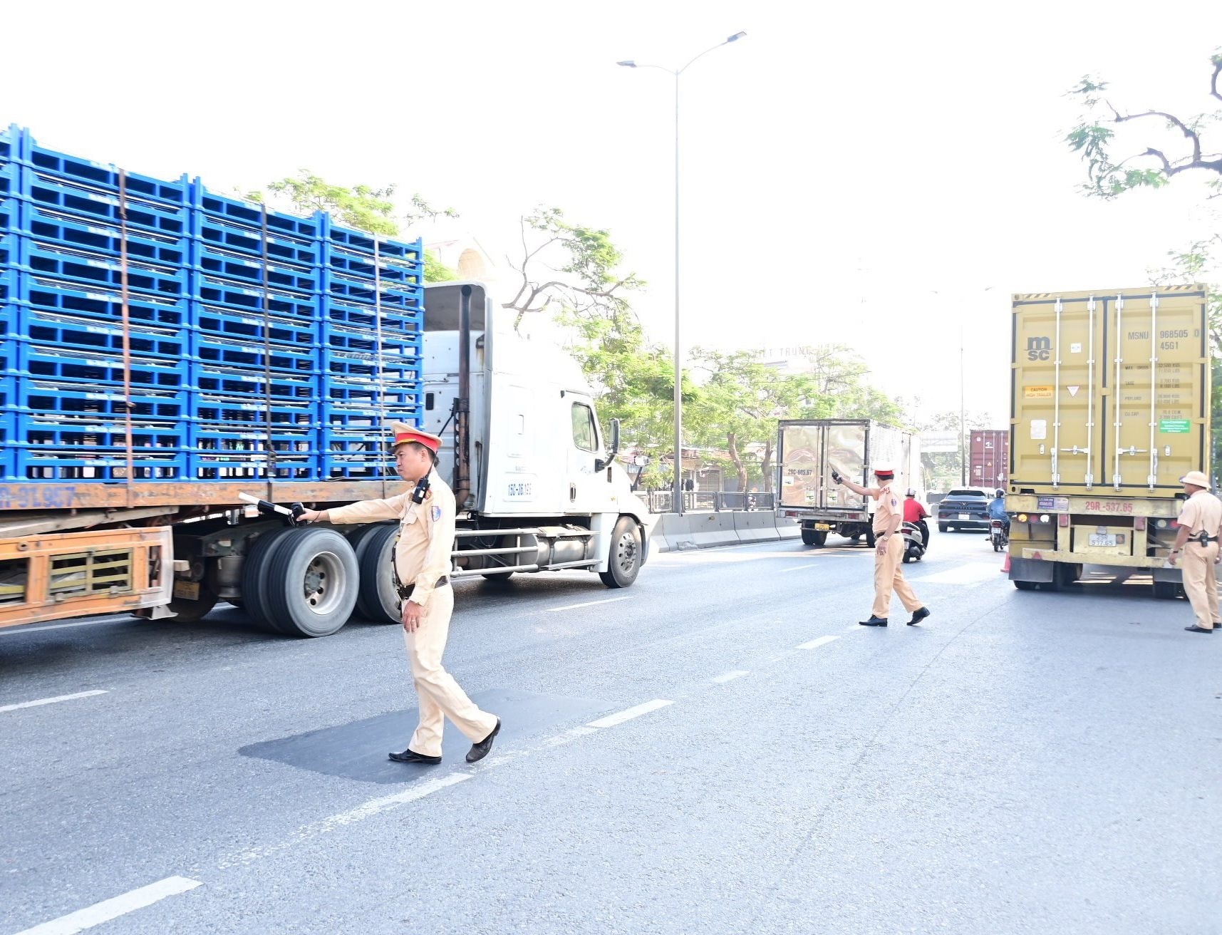 Trên cơ sở biểu mẫu và phụ lục danh sách phương tiện có tải trọng từ 15.000kg trở lên do Cục Cảnh sát giao thông cung cấp, cán bộ làm nhiệm vụ đăng ký xe trực tiếp kiểm tra phương tiện và tiến hành thu thập 6 nội dung theo quy định. Quá trình rà soát, nếu phát hiện vi phạm, lực lượng chức năng sẽ tiến hành xử lý.