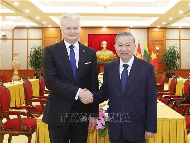 Tổng Bí thư Tô Lâm nhiệt liệt chào mừng chuyến thăm mang ý nghĩa lịch sử của Tổng thống Litva, khẳng định đây là dấu mốc quan trọng, góp phần thúc đẩy quan hệ song phương Việt Nam - Litva phát triển mạnh mẽ, thực chất và hiệu quả hơn nữa trong thời gian tới.