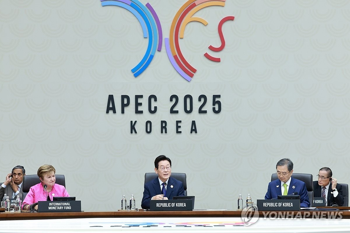 Trong phiên họp đầu tiên, với chủ đề "Hướng tới một khu vực kết nối và phát triển hơn nữa", Tổng thống Hàn Quốc Lee Jae Myung nhấn mạnh tầm quan trọng của hội nghị APEC trong bối cảnh trật tự thương mại tự do đang thay đổi và bất ổn kinh tế toàn cầu gia tăng.