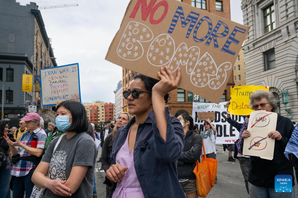 Biểu tình phản đối vụ tấn công vào Iran do Mỹ và Israel thực hiện tại TP San Francisco, Mỹ. Ảnh: XINHUA
